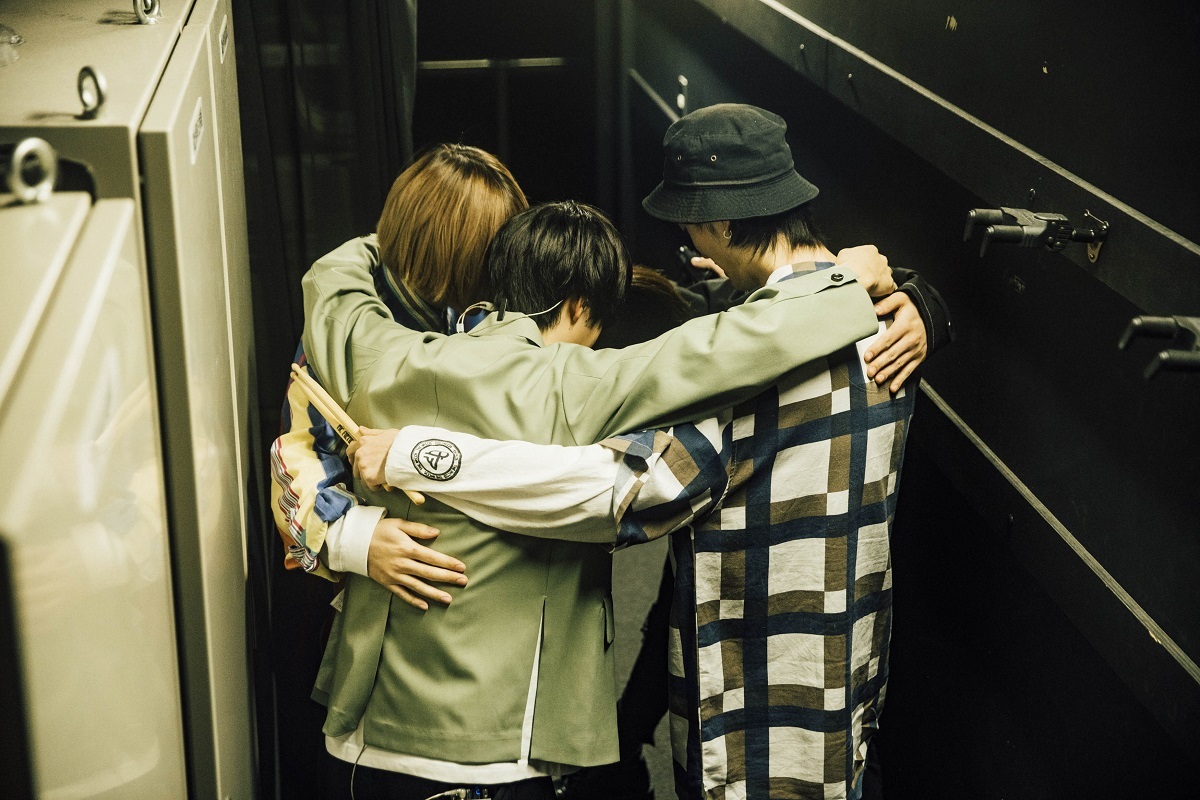 これまでのこと、そしてこれからのこと。すべての人への感謝を伝え、ファーストアルバムについて話していた右京が、ふと感極まって言葉を失った。つられてshujiも涙声になる。すかさず右京から「タクミ、繋いで」と託されたタクミが「ここで繋ぎを任されるのはしんどいね」と、笑顔で空気を和ませる。なんて素敵なチームワーク。右京が言葉を取り戻し、まっすぐに前を向いてオーディエンスに呼び掛ける。