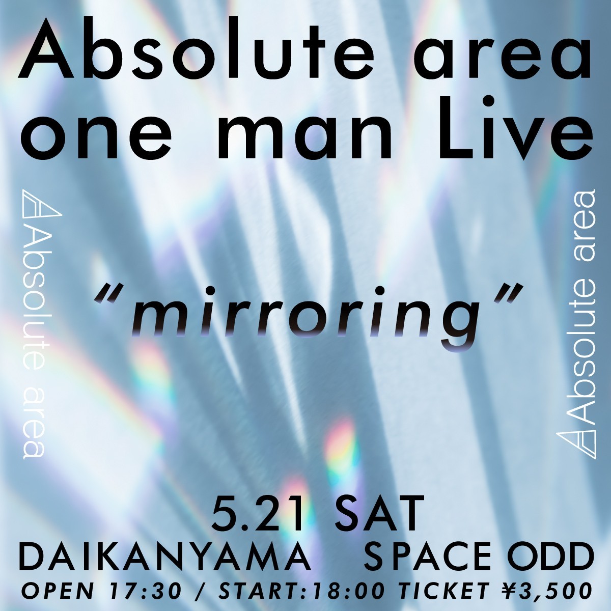 Absolute areaが、昨年・2021年のリベンジワンマンライブで限定販売された「mirroring」をタイトルにつけた『ONE MAN LIVE「mirroring」』を5月21日(土)代官山SPACE ODDにて開催する。