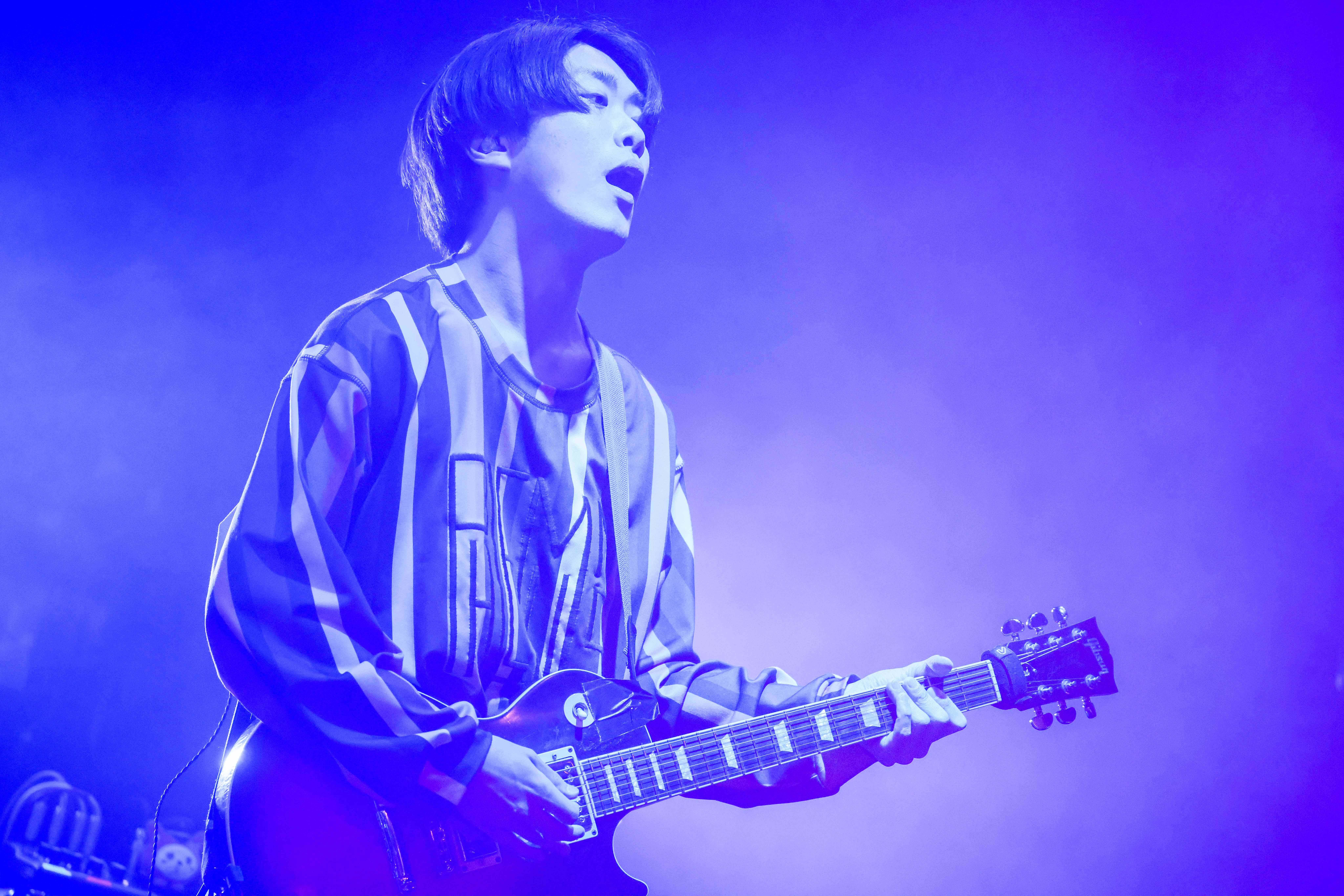 ステージにバランス良く並んだ6人のクラブヒーロー感に高まり、「自由に踊っていきましょう!」と熊木幸丸(Vo)がフロアを先導すると、「ひとりの夜を抜け」からライブがスタート。日常のどうしようもないリアリティが熊木のリズムを縁取る独特の声やリリックからしっかり伝わる。明確でありながら、そっと隣にいてくれるような響きもあって、押しつけることなく「踊るのってこんなに気持ちいいんだよ」と示してくれるから、スニーカーで夜の町をどこまでも行けそうな気分になってくる。