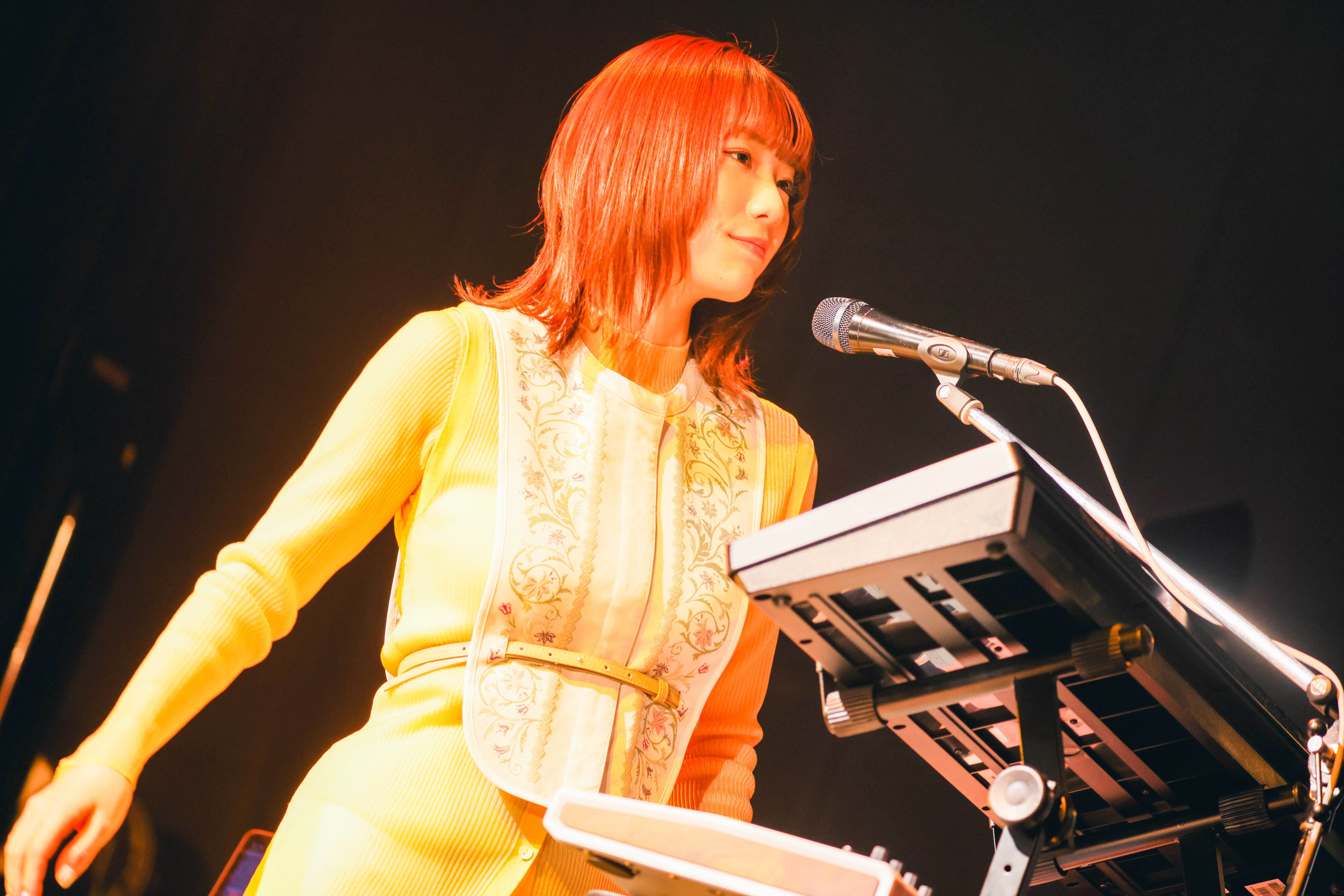 序盤から初見の人も一瞬で巻き込み、後方までダンスフロア状態に。興奮のさざなみが「Drawing!」でパワフルに爆発すると「雨が降るなら踊ればいいじゃない」では、大瀧真央(Syn)のドリーミーなシンセが現実を忘れさせてくれる。初期曲「Burning Friday Night」のゆったりしたリズムに無理なく身をゆだねていると、季節の喜びをそのまま音で表現したような「春はもうすぐそこ」へシームレスにつなぐ、というようなライブならではのアレンジが随所に。