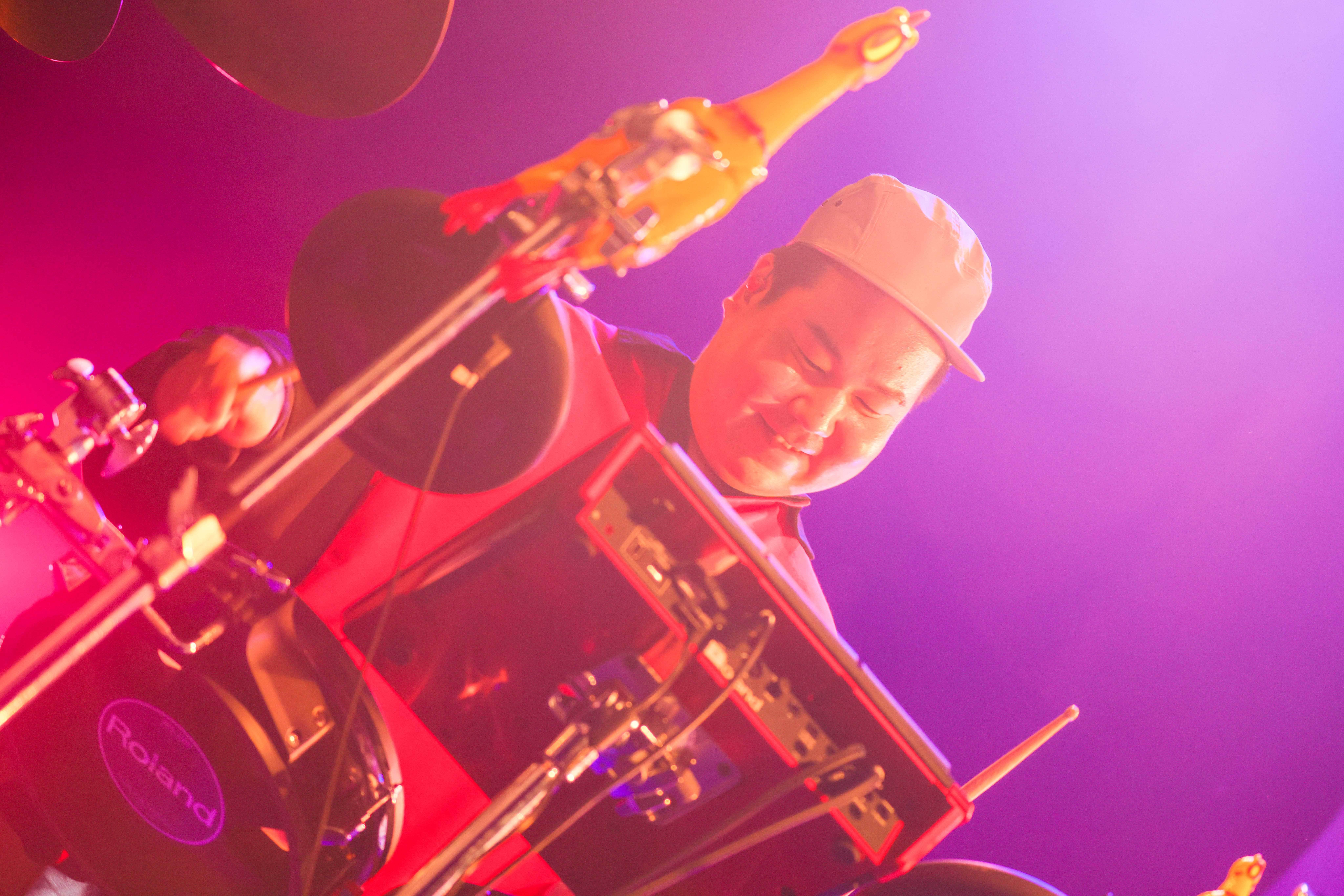 とそれぞれ感想を語る中、山浦聖司(Ba)は、「結婚しました!」と左薬指に光る指輪を見せ、突然の結婚発表!(笑)祝福ムードに包まれ、ラミ(Per)は、「久しぶりのライブで心が折れた瞬間もあったけど、一番前のお子さんが元気をくれて頑張れました!」とキャラを裏切らないほっこりエピソードを披露。