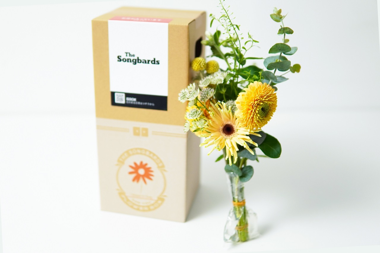 さらに今作リリースにあわせ、約20年に渡り花の卸売を営み、現在では独自のeコマースサービスも展開する『花BOX』とのコラボ商品として『オリジナル“母の日”フラワーギフト「The Songbards 【ガーベラ】」』の販売が決定。「ガーベラ」というタイトル、そして楽曲のメッセージ性が『花BOX』が掲げるコンセプトと共鳴し合い、今回このコラボレーションが実現する事となった。新曲「ガーベラ」をモチーフとしたイエローベースのオリジナルブーケと特典CD(「ガーベラ」1曲収録)を、メンバー・岩田栄秀(Dr/Cho)自らデザインしたオリジナルBOXに梱包した特別ギフトとなっている。本商品は4月20日(水)までの期間・数量限定商品となる。