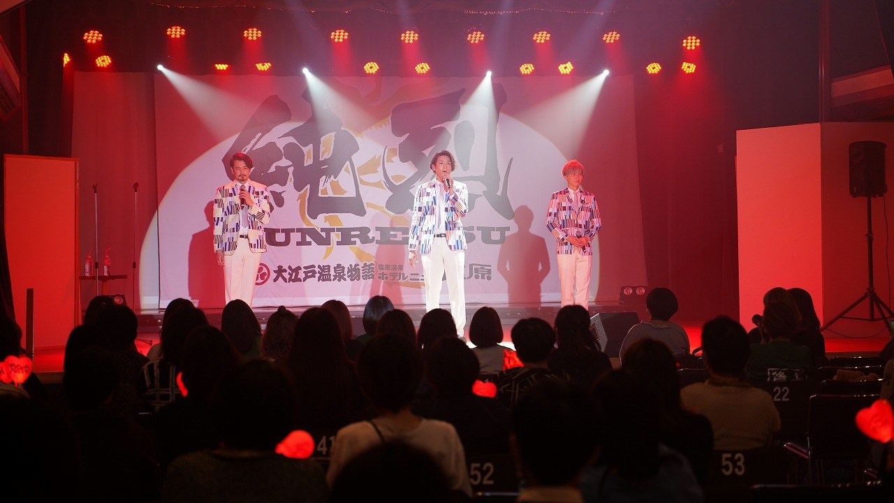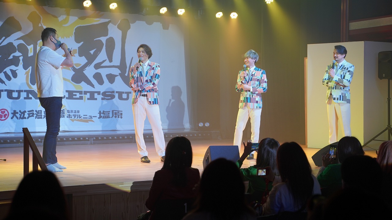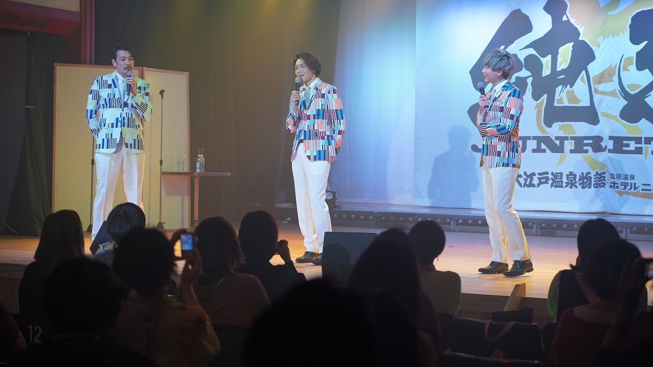 なお、純烈が3人でステージに立ったのは2019年6月2日にリードボーカルの白川がウイルス性胃腸炎のためにティアラこうとうでの公演を欠席して以来。その時は、開場時間直前に白川不在の発表となったため、払い戻し対応をしつつも、来場したファン対象に無料でのトーク&ライブを3人で行い、神対応として話題になっていた。