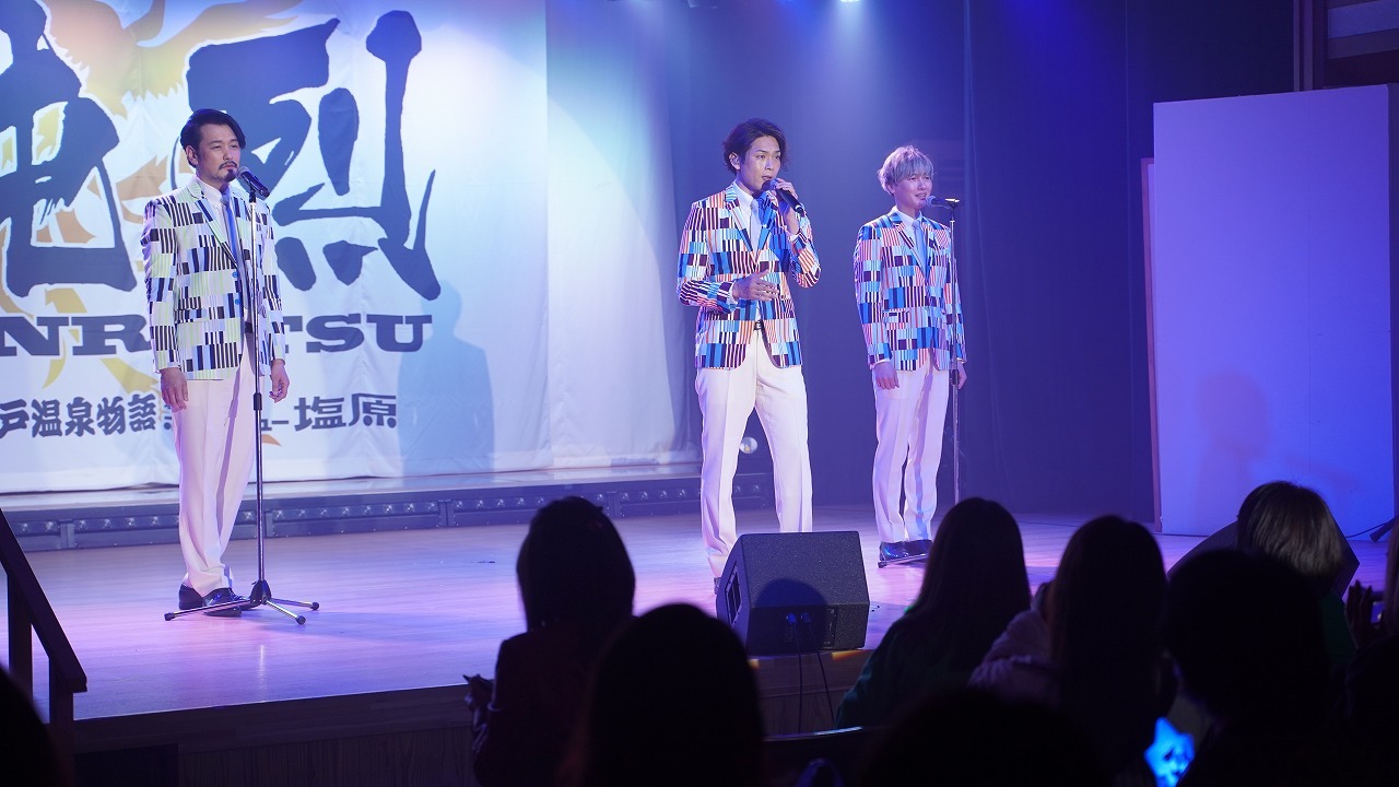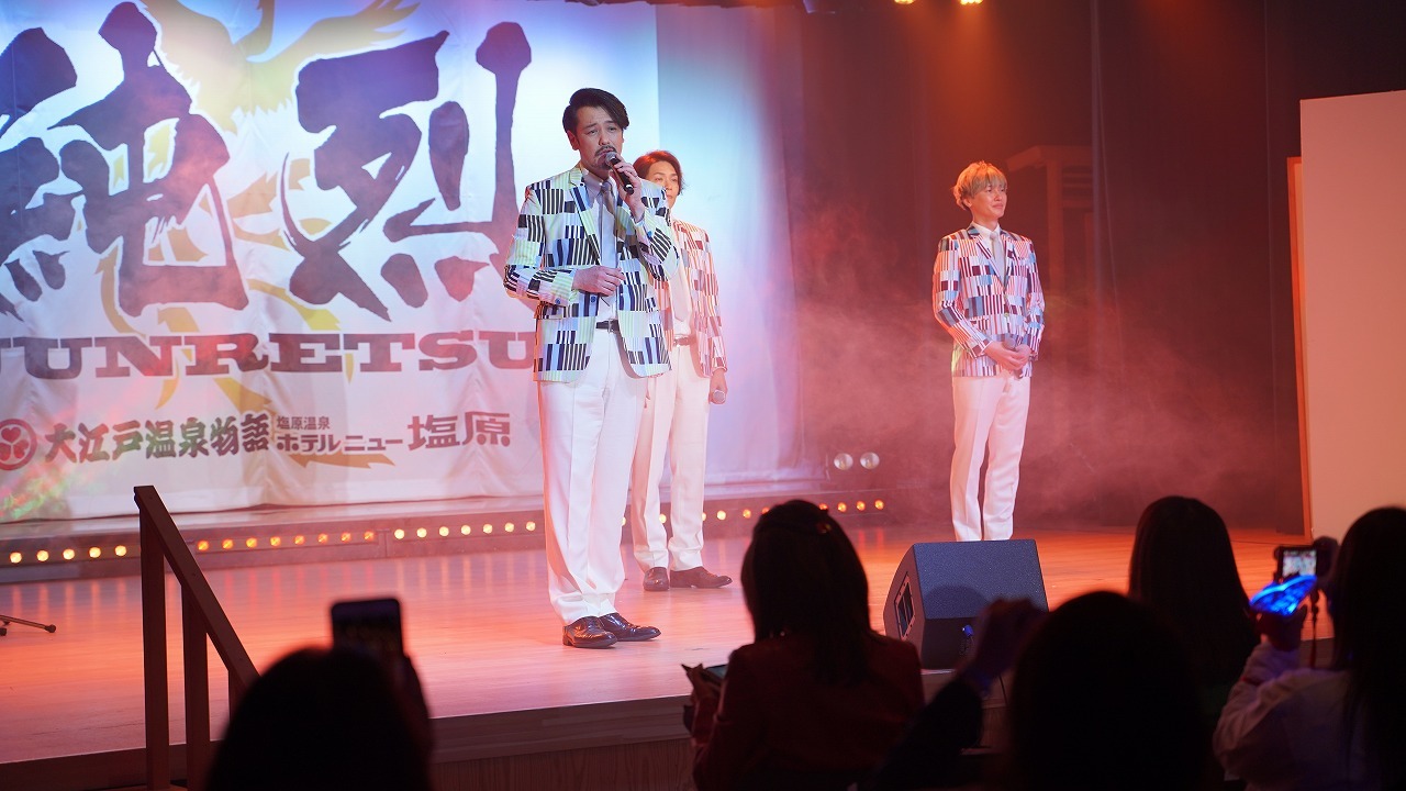 メンバーの小田井涼平が年内で脱退することを発表した純烈が、4月6日、栃木・ホテルニュー塩原でライブを行ったが、先日、リーダー・酒井一圭の家族が新型コロナの陽性となり、濃厚接触者と判断されたことで欠席(自身は陰性)、小田井、後上翔太、白川裕二郎の3人で公演を行った。