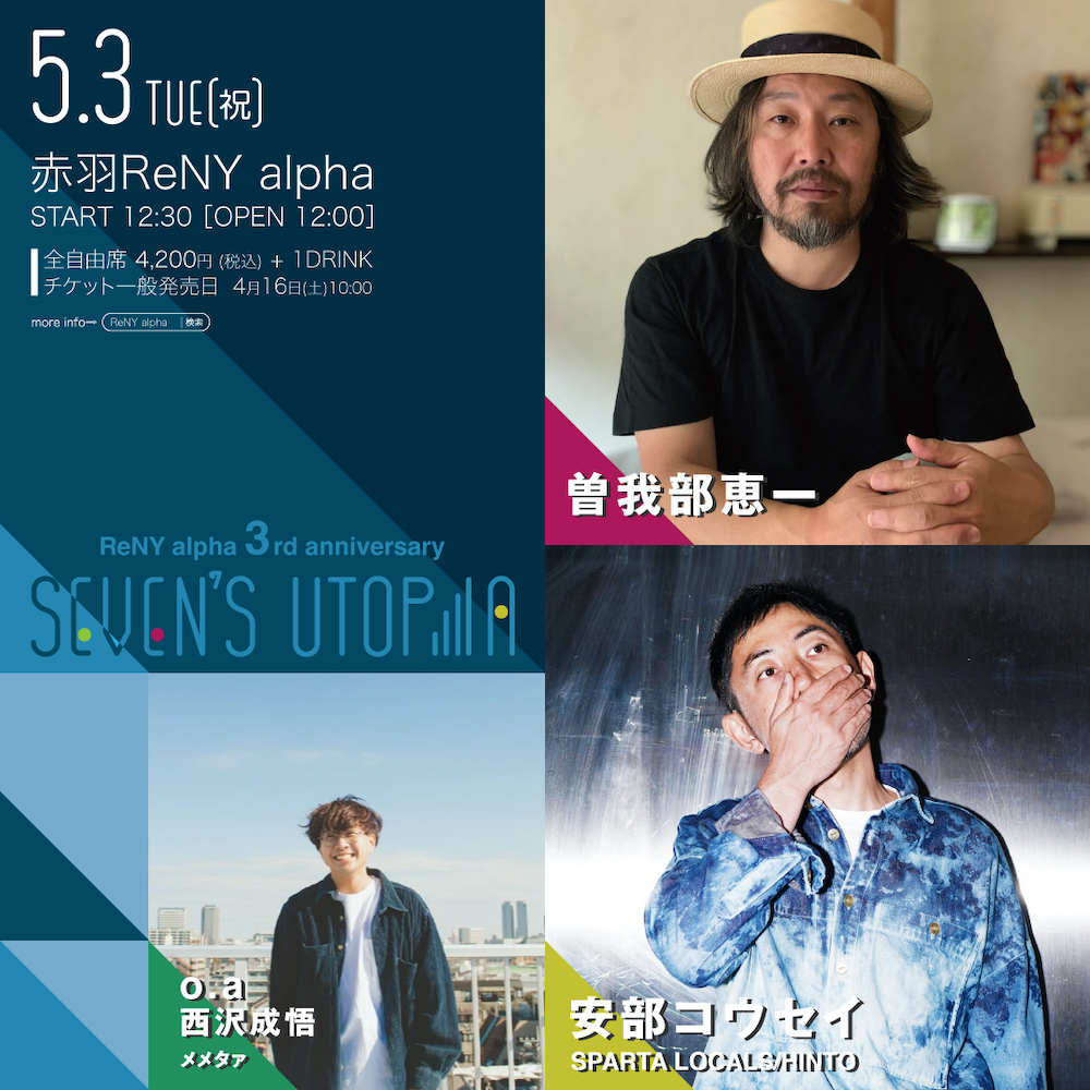 様々なアーティストのコンサート制作を手掛ける“SEVEN’S SOFTHOUSE”によるライブイベント『SEVEN’S UTOPIA』が、5月3日(火・祝)に東京都・赤羽ReNY alphaにて開催される。