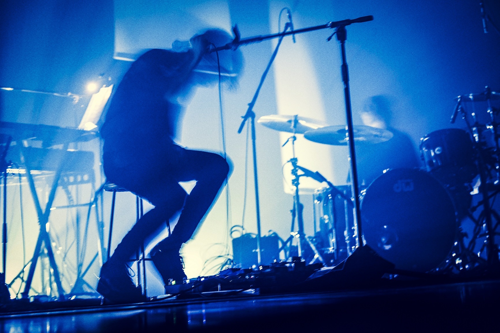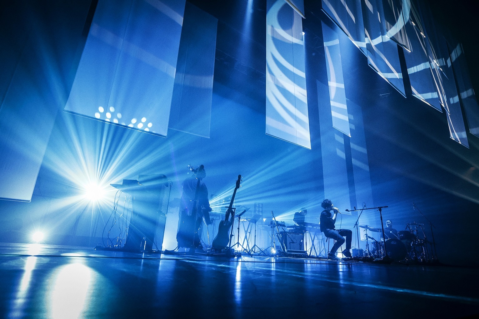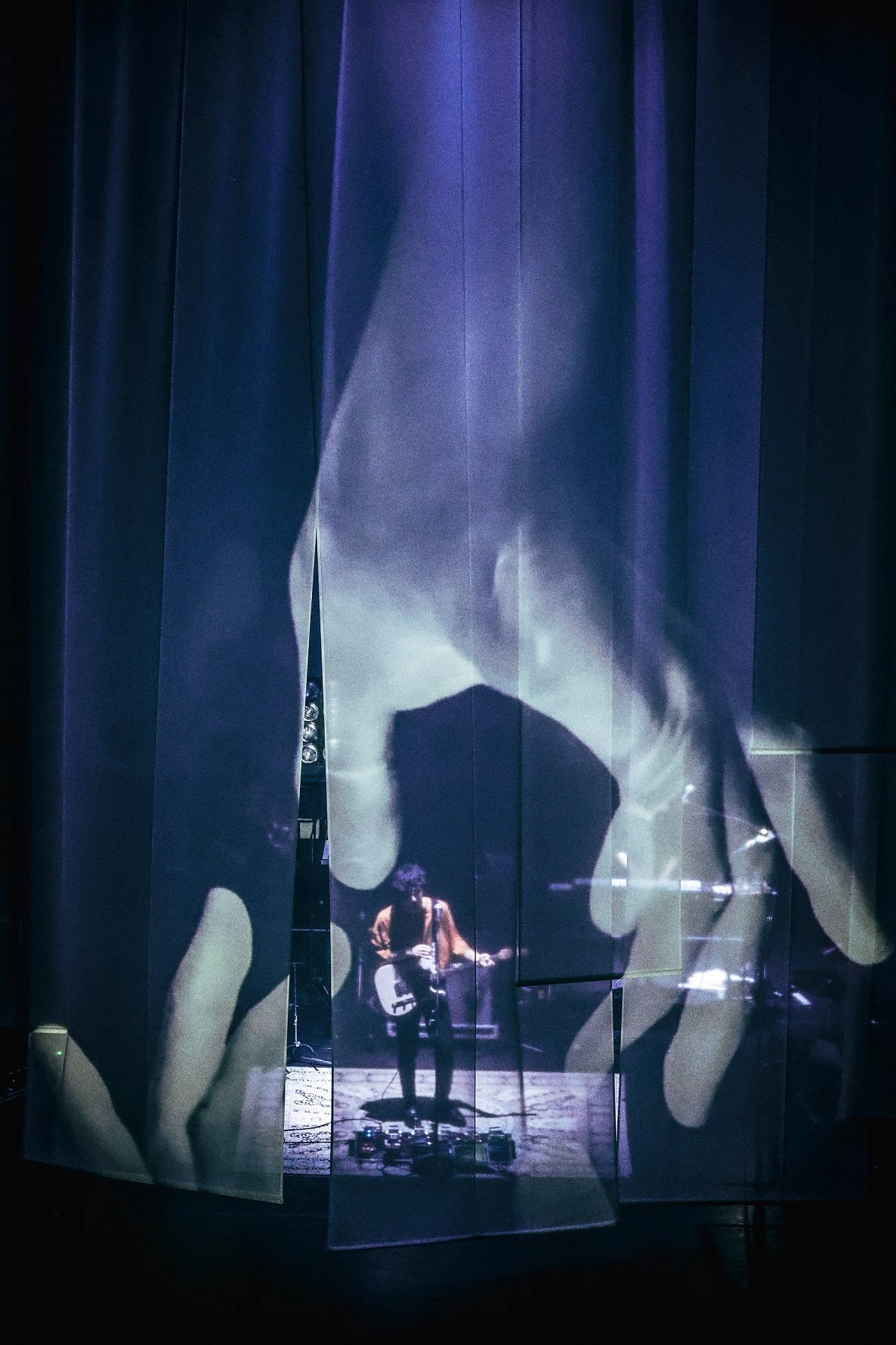 ライブ用にリアレンジされ、しっとりした歌とヴァイオリンで始まる序盤が印象的な「will-ill」、アコースティックギターに持ち替えての「flower」は紗幕が下がったまま、映像演出とともに楽曲を魅せていったが、「flower」の間奏でエレキギターに持ち替えたところで紗幕が上がり、メンバーの姿がはっきり現れると、ここから「Abnormal trick」、「Crazy Tampern」といったBPMの速い曲を連発。こういった曲ではTKの演奏はもちろん、吉田とBOBOの手数多いアグレッシブなプレイも非常に際立つ。もう一度紗幕を下げて演奏された「phase to phrase」は、ギターとピアノが幾何学的なループフレーズで掛け合い、スピーディーに切り替わる映像も加わって、トランシーな高揚感が感じられた。