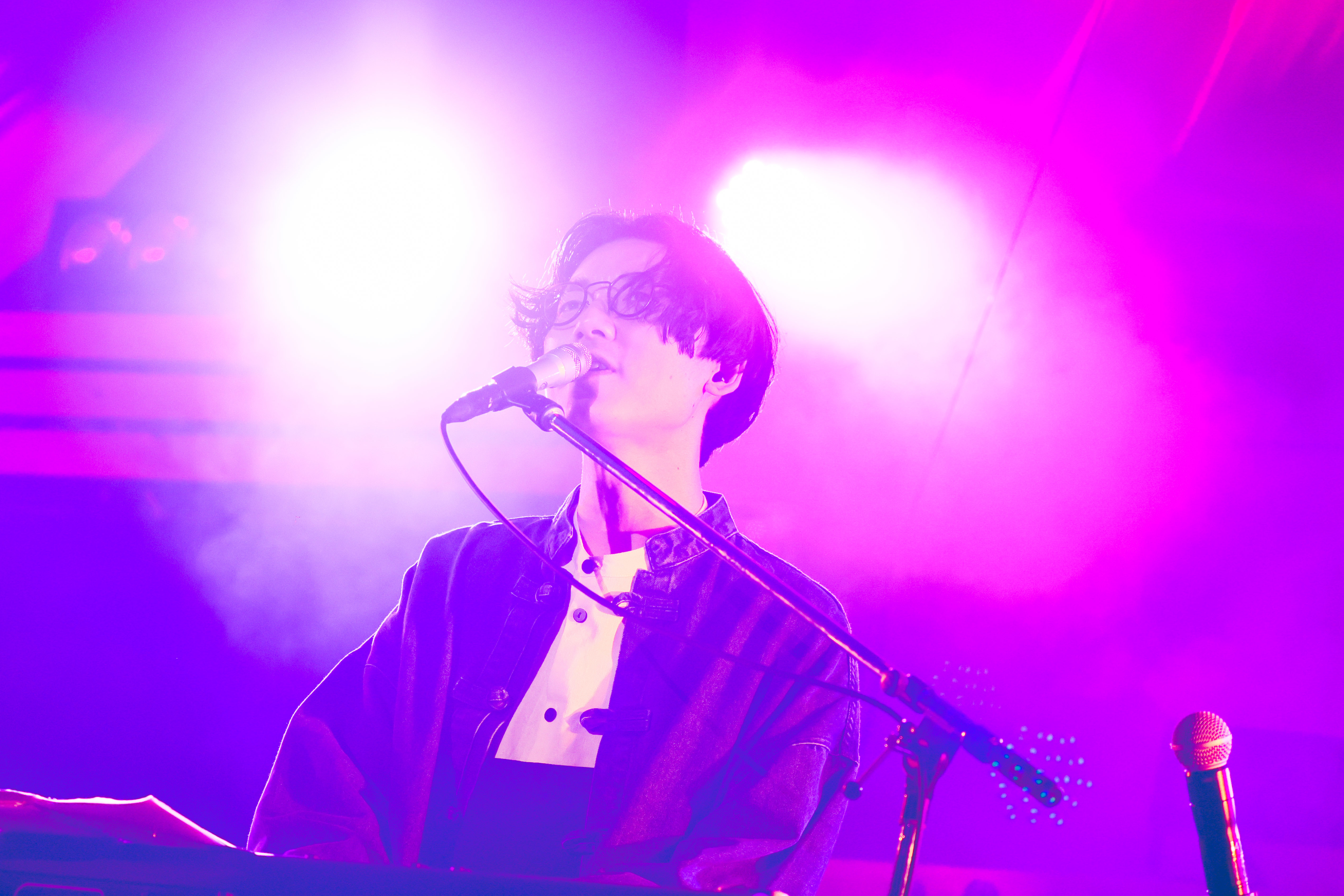 2番手に登場したのは福岡出身のシンガーソングライター、kiki vivi lily。「手を触れたら」からふわりと軽やかでとびきり甘い歌声を響かせる。ファンキーなバンドサウンドに心地よくウェーヴィーな歌唱、絶妙な抜け感にあっという間に虜になるオーディエンスたち。次曲「YumYum」、休日の午後のまったり感をそのままパッケージングしたような万福に富んだサウンド、バンドメンバーの太い男性コーラスのギャップもたまらない。「タイトルのまま、「Groovie」な曲をたくさん持ってきたんで!」の言葉の通り、次々にグッドフィーリングなナンバーを披露していく。