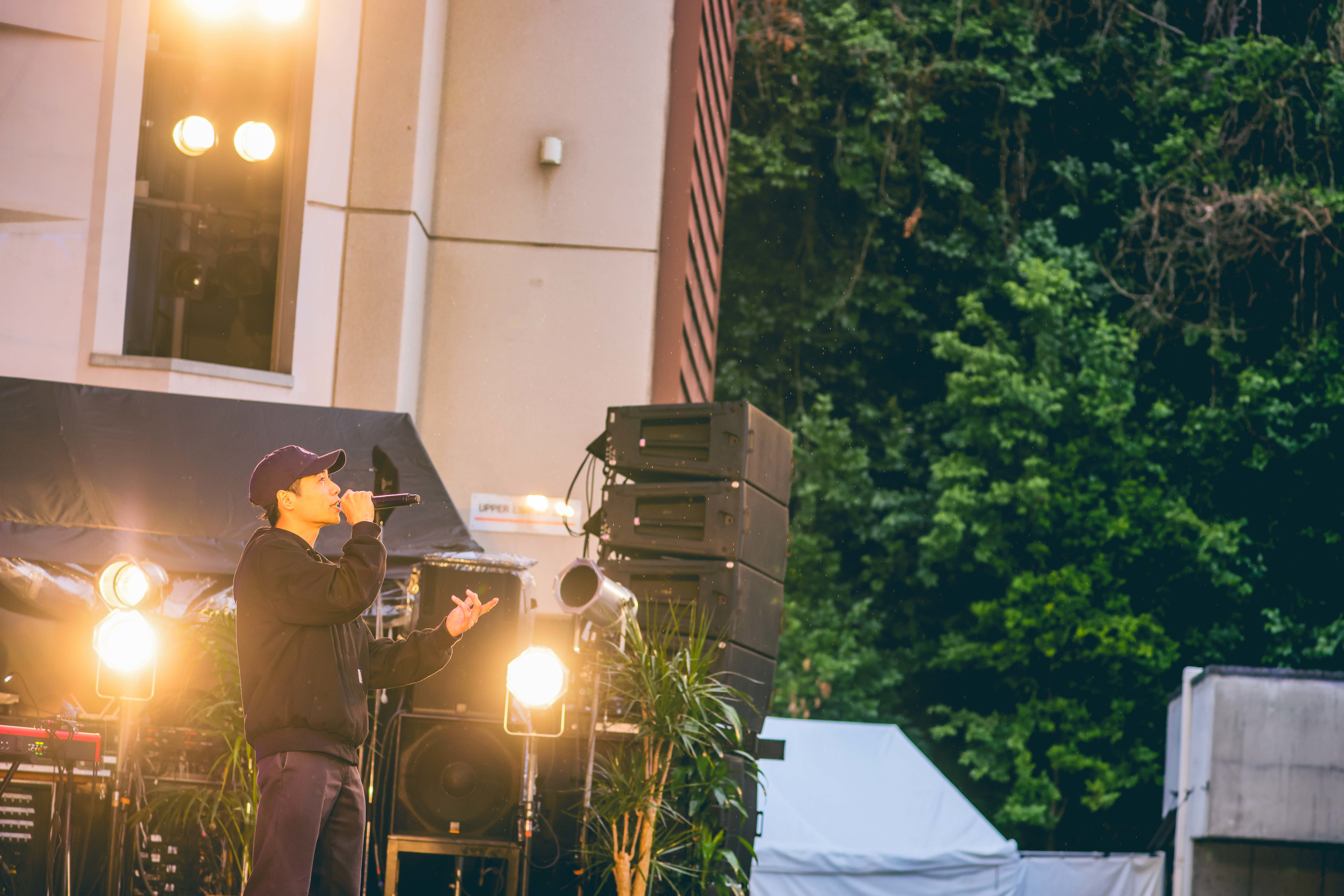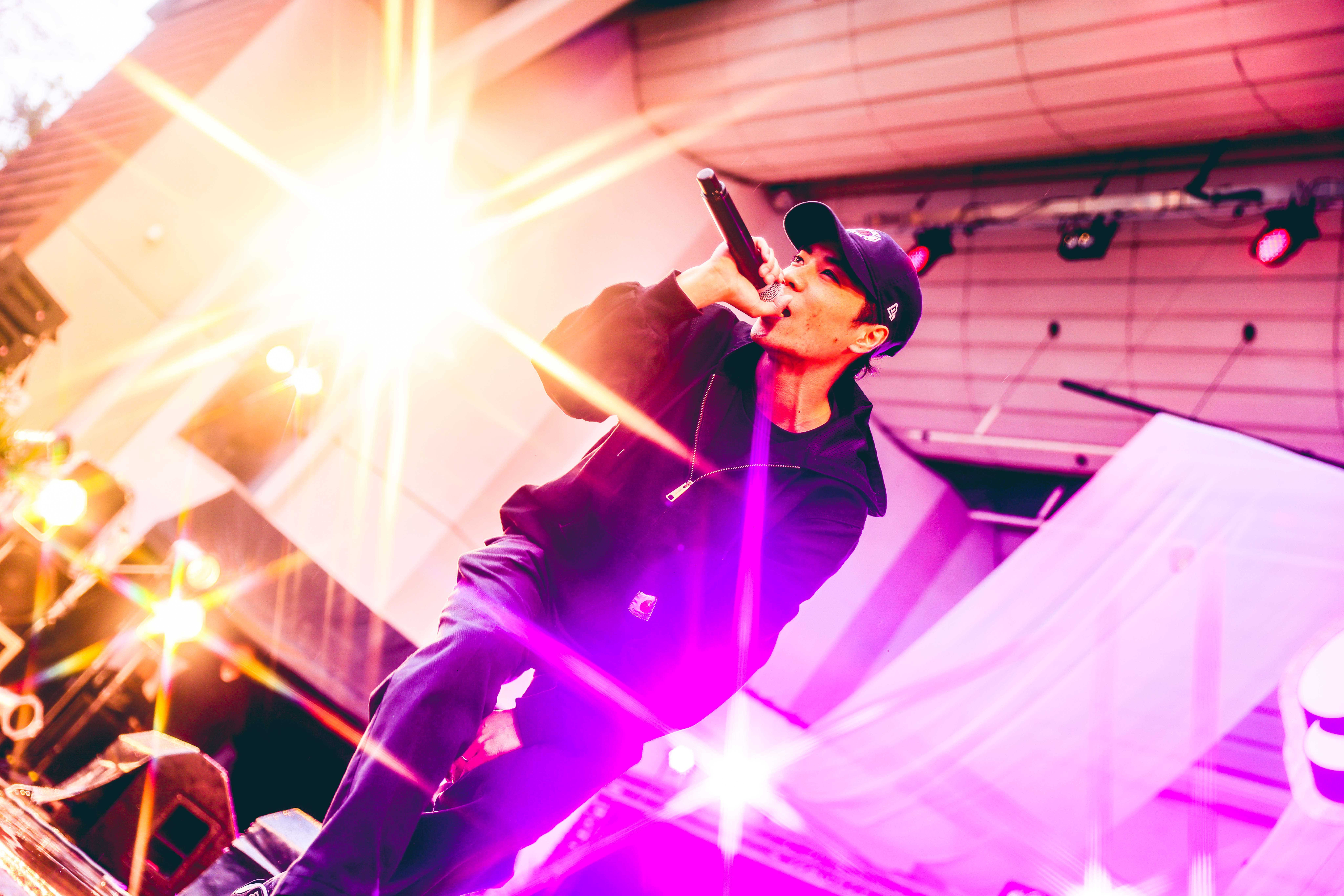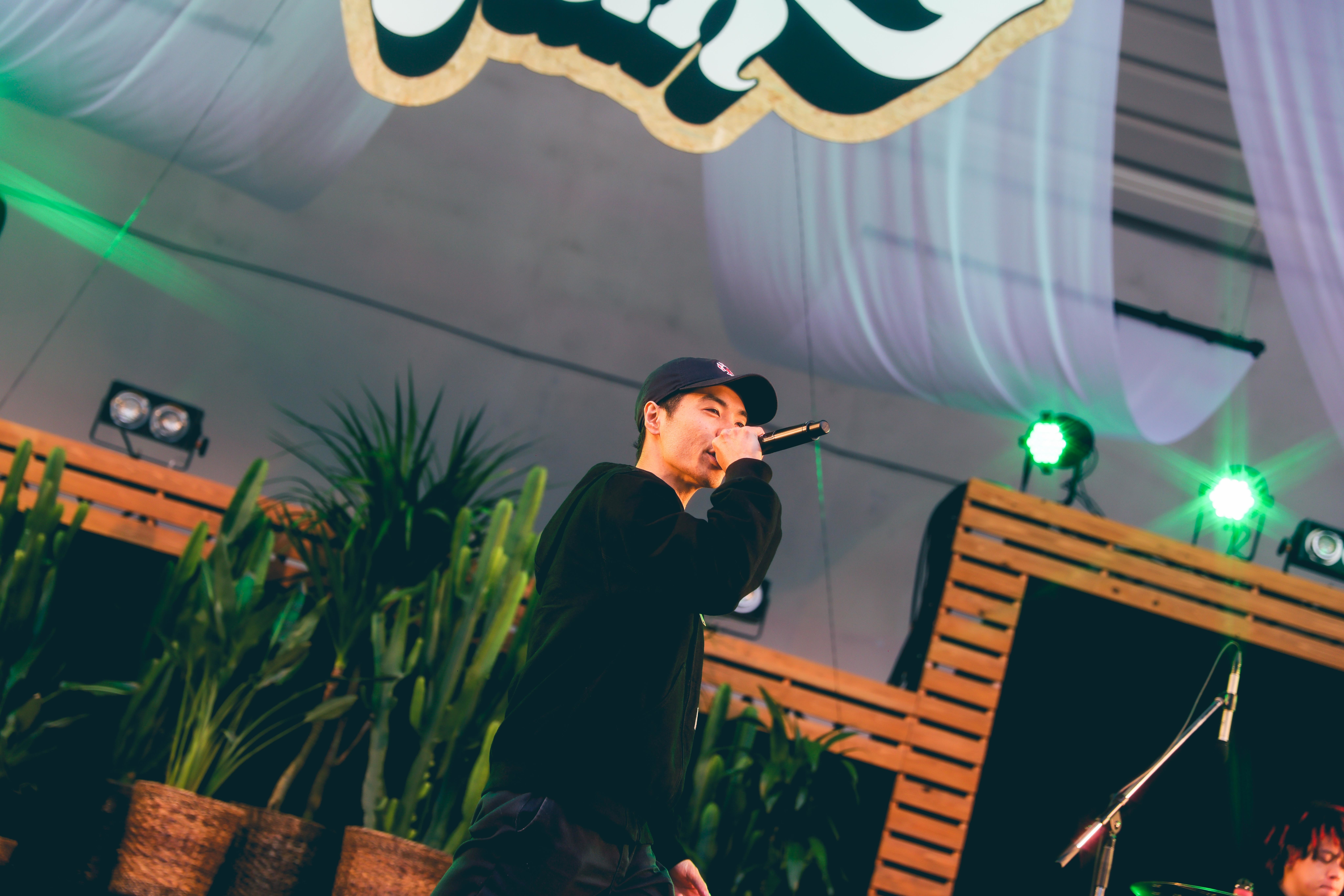 続いてはRyohu。ラッパー、トラックメイカーとしてソロで活躍するのはもちろん、バンド・Aun beatzや東京発のHIPHOPクルー・KANDYTOWNのメンバー、さらに過去にはズットズレテルズにも所属するなど、多岐に渡って活躍する彼。この日はバンドセットでのステージで、「All in One」から生音の心地よさの中でご機嫌なサウンドを放っていく。パキっとしたリズムにギュギュット詰め込んだリリックが気分を昂らせる「GMC」、ご機嫌なベースラインのなかでバランス感覚抜群なラップをのせる「Shotgun Shuffle,Pt.2」など、ヒップホップの枠を大きく超えた多彩な音が連なっていく。