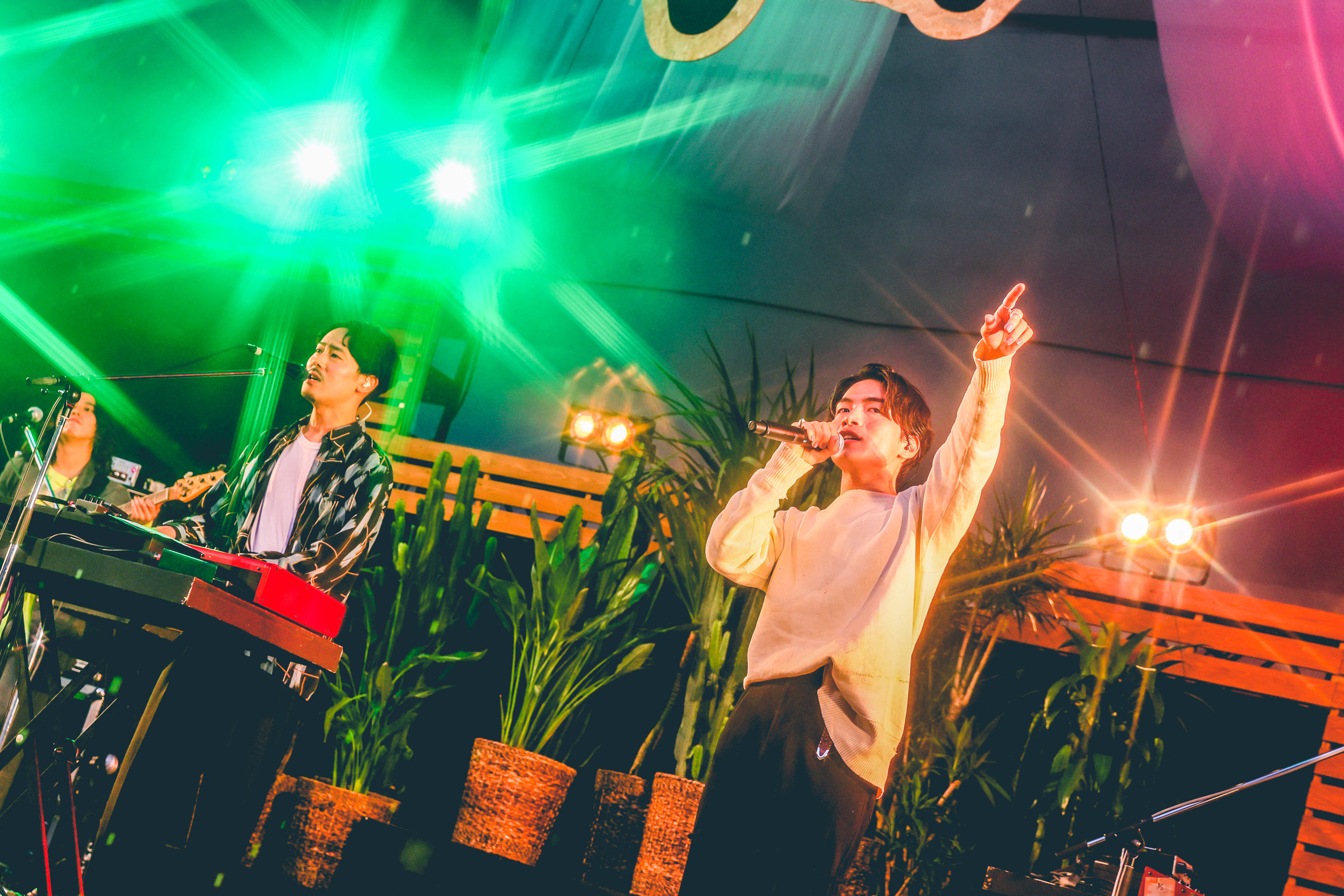 ライブ後半、「PLAY feat.TRNDRE」の披露ではもちろん、コラボ返しにとTENDREがゲストにイン! 互いに肩を組んだり、満面の笑みを浮かべてパフォーマンスする姿に会場も一緒になってハイテンションに。ステージ終盤、今年も精力的に活動していきたいと意気込みを語り、ラスト「Do Well」へ。力漲る歌唱と圧倒的なサウンドで野外の会場をダンスフロアへと昇華させ、初日のイベントは大団円で幕を閉じた。