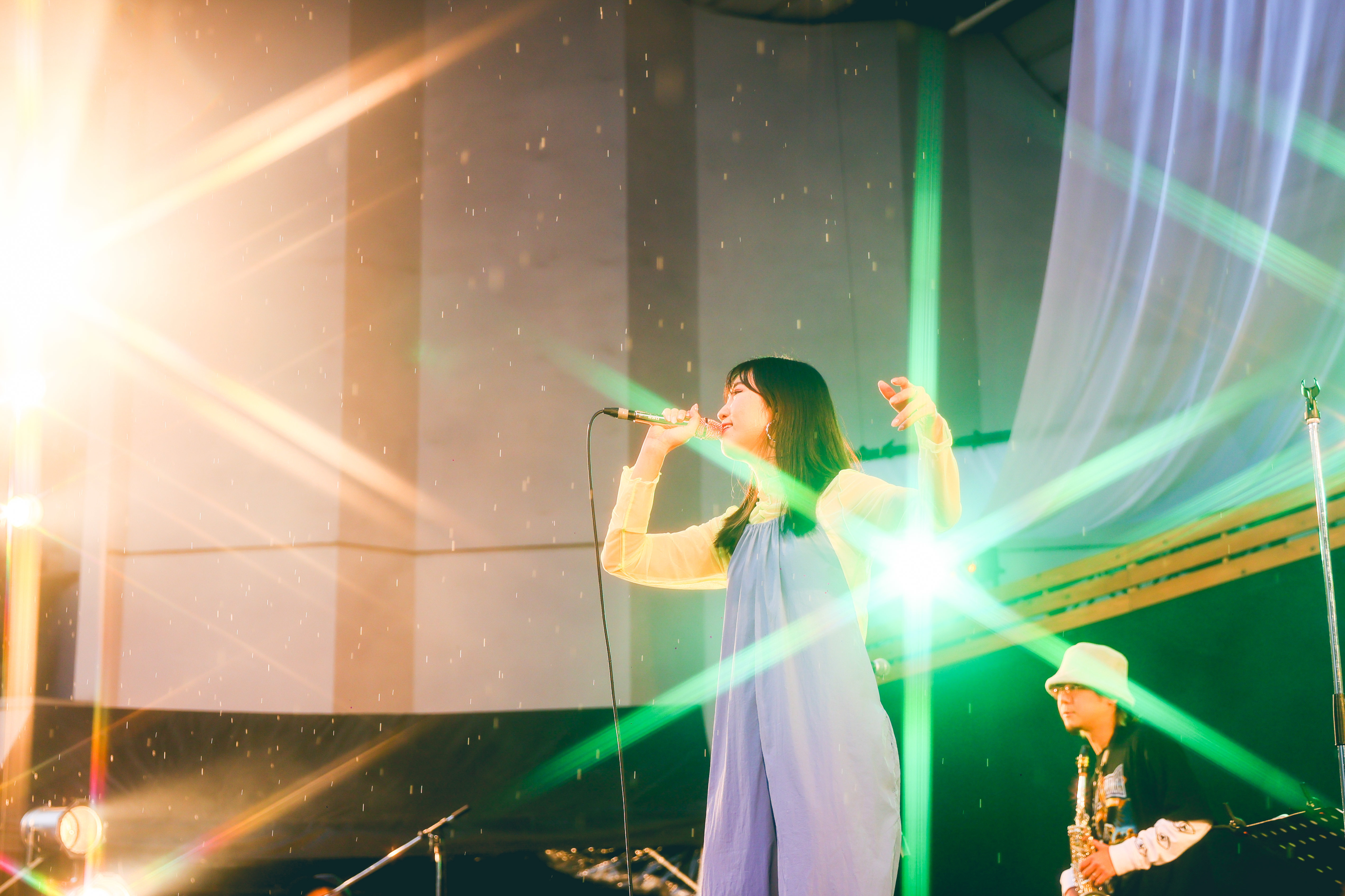 「夜の歌を。コロナ禍でこういったタイミングで歌うこともなかったので新鮮です」と、出来たばかりの新曲も初披露。東京の夜を思わせるまどろんだ雰囲気の楽曲に、さらりと聴かせる高音域の歌声が印象的だ。4月27日(水)には新しいアルバム『Tokyo State Of Mind』もリリースされることもあり、その世界観をいち早く体感できたとあって、観客からは歓声代わりの大きな拍手が届けられた。ライブ後半は一気にテンポアップし、音で躍らせ、声で酔わせていく。ライブ後半は「Stars In Your Eyes」で心地よく離れ難い音の空間を生み出したり、「Natsume」で「月がキレイですね」とゆるりと愛を音で表現したり。ラストは1人だけで「旅の途中」を少しだけ披露。<今日もまだ旅の途中>と、これから先の活動が気になるパフォーマンスでステージを後にした。