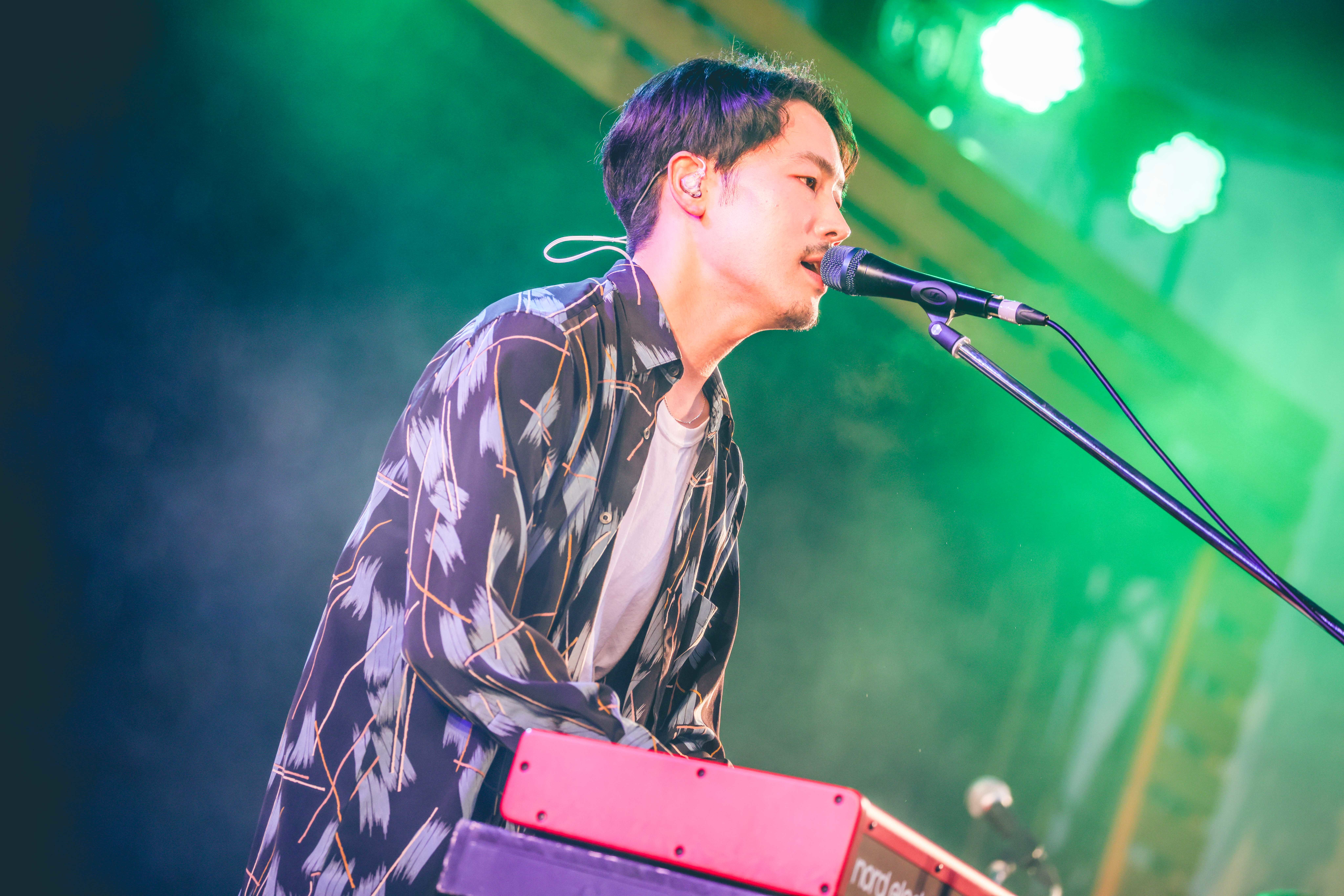 そして、キーボーディストでありトラックメイカー、そしてマルチプレイヤーでプロデューサーと、多岐に渡る活動で注目を集めるのがKan Sano。1曲目「Flavor」からビートミュージック全開のサウンドで観客を揺さぶっていく。空は陽が沈み、刻々と夜の色合いへと移り変わっていく時間。その時間を音で表現するように、哀愁を感じる心地よいビートが流れていく。キーボードが軽快に弾むジャジーなサウンドの「Ash Brown」では、観客の手拍子も混ざりあい、あっという間に一体感が増していく。続く「My Girl」ではベースソロを披露するなどそのマルチっぷりに観客からは喝采が送られる。