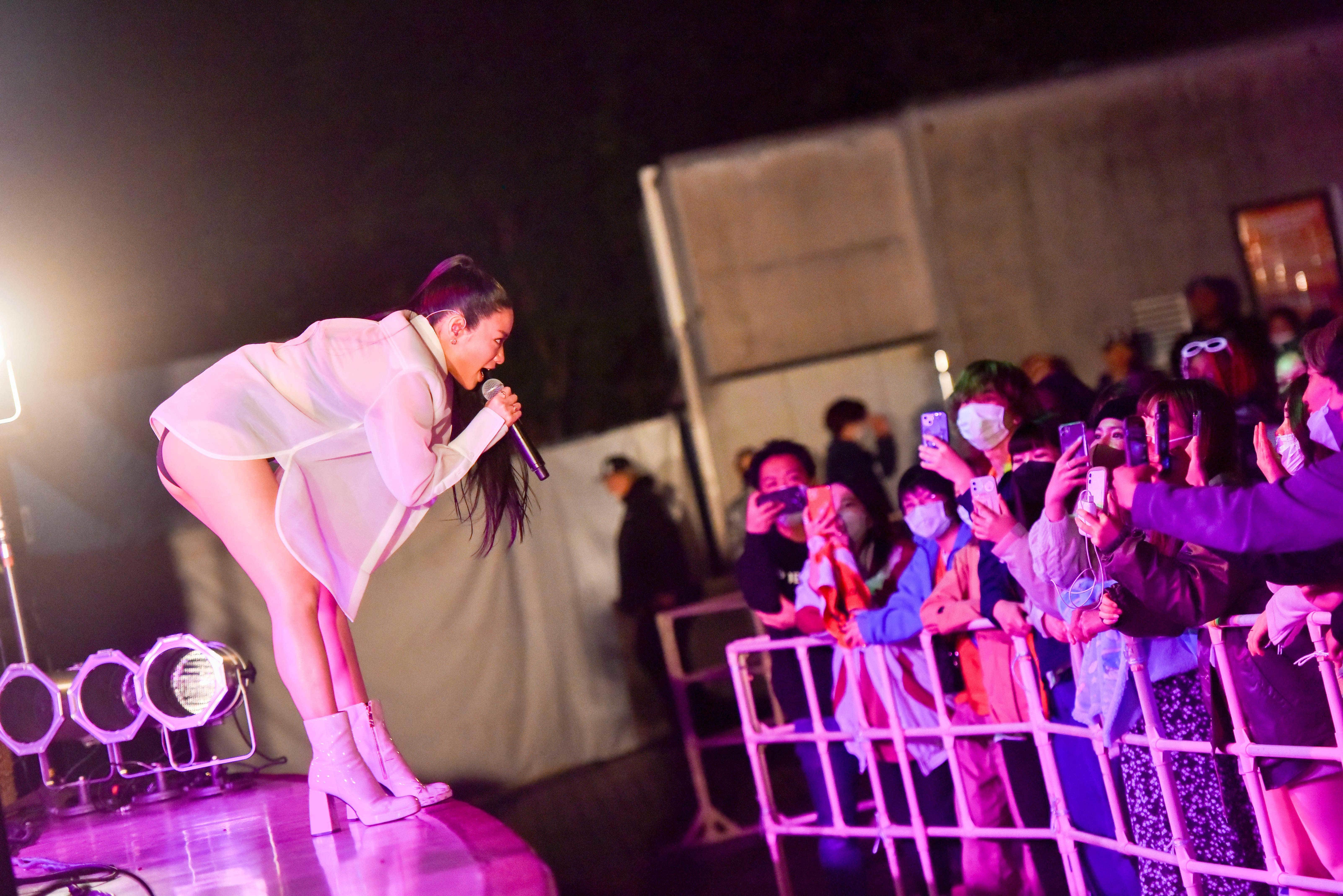 集まった観客に感謝の気持ちを伝え「女の子たちだけじゃない。居場所がない人、選択肢がない人、選ばれることを待っている人へ。選択肢は自分たちにある」と、「どれにしようかな」へ。ステージのギリギリまでオーディエンスに近寄って顔を近づけるように歌いあげる姿に、応えるように前のめりになってステージに魅入る観客たち。芯の強さ、優しさを見せる「Revenge」では、観客がスマホのライトを掲げてステージを照らす。夜に輝く無数の光を見つめ、愛し気な表情を見せる彼女。