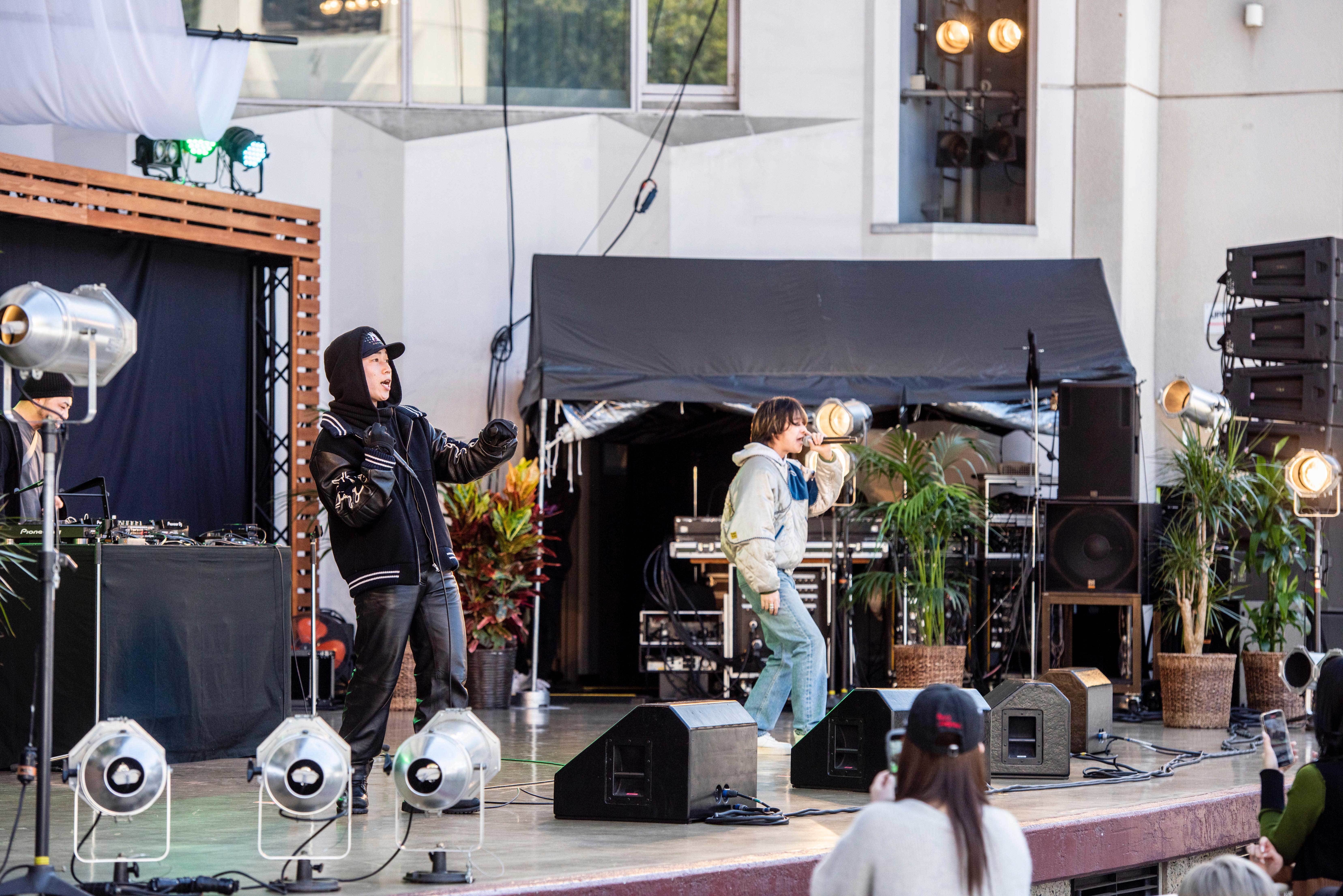 この日のオープニングアクトは、ラップスキルや歌唱力はもちろん、メンバー自らソングライティングやビートメイキングをこなすなどセルフプロデュース能力の高さも高く評価される、東京発のヒップホップユニット・Bleecker Chrome。3月30日(水)にリリースした1stアルバム『SEVEN THIRTY ONE』からの新曲やエモーショナルなトラックと透明感ある歌声が印象的な「14」など、個性あるナンバーを連投。Xinの勝気だけれど刹那的な歌声と、KENYAの感情揺さぶる歌声、そして互いを高め合うラップスキル。正反対の個性をぶつけあって、短い時間ながらも唯一無二のステージを披露。