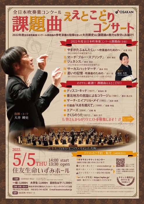 フィルハーモニック・ウインズ大阪が、2022年5月5日(木・祝)住友生命いずみホールにて、『課題曲ええとこどりコンサート』を開催する。