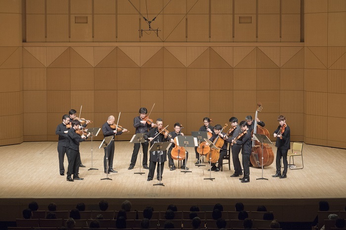 公演ごとにメンバーは異なるが、 石田以外の12人は現在の楽壇を牽引する凄腕が顔を揃える。 今日の公演で第一ヴァイオリンのトップを務めた三上亮がMCで明かしたところでは、 本番前のゲネプロでは3小節くらいしかリハーサルをしない曲もあったそうだが、 クラシックもロックも作品が内包するものを余すところなく聴かせてくれる。 チェロの金子鈴太郎はザ・フーのジョン・エントウィッスルというかレッチリのフリーというか、 ロックミュージシャンのごとく熱い演奏でアンサンブルを牽引した。 また、 生野正樹以下ヴィオラが奏でる中音域がふくよかに響いており、 所々挟まれる生野のソロも鋭く切り込んできて演奏を盛り立てた。
