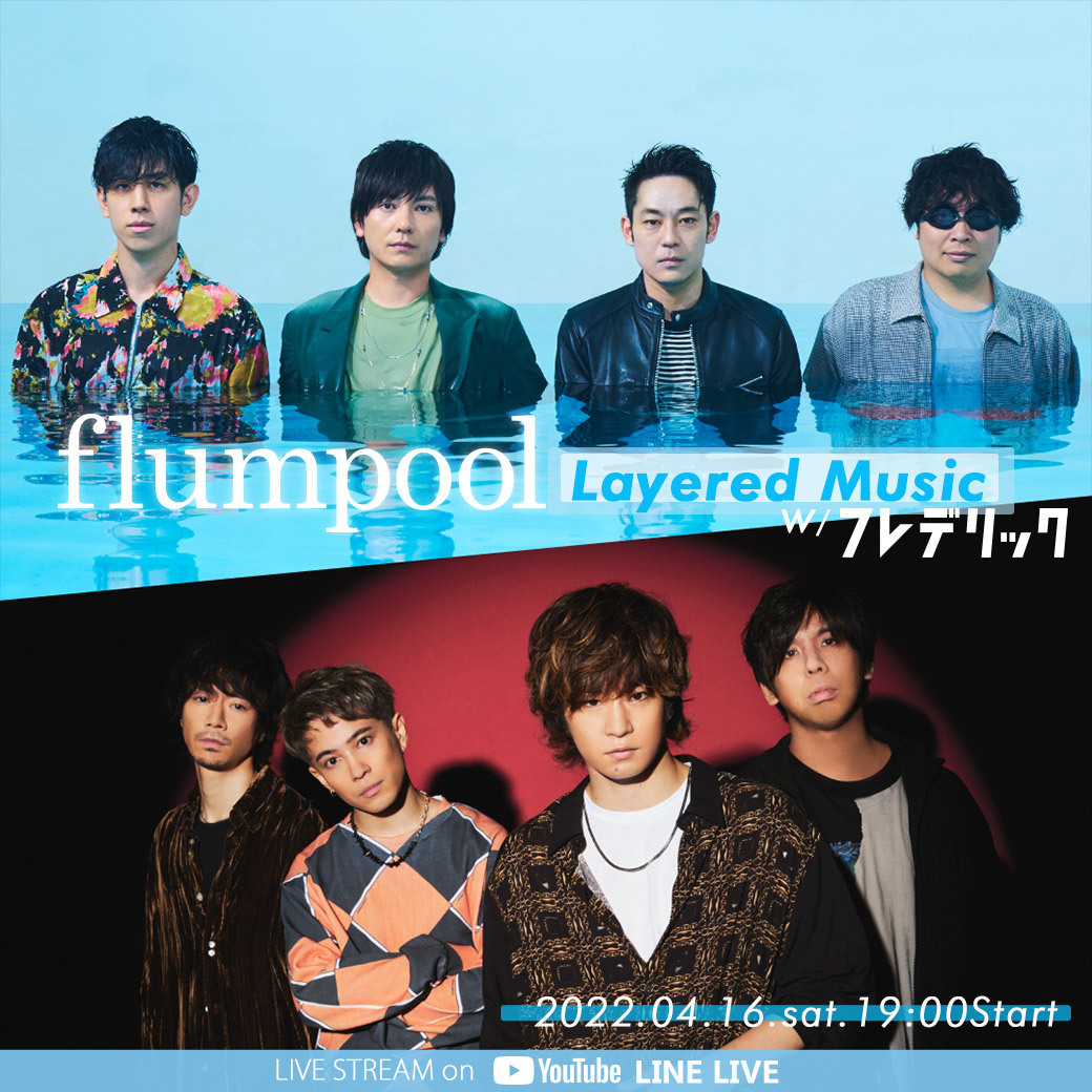 また、4月16日(土)19時から『flumpool「Layered Music」w/フレデリック』と題した生配信番組がスペースシャワーTVのオフィシャルLINEアカウントとflumpoolのYouTubeチャンネルで生配信される。ゲストにフレデリックの三原兄弟を迎えて『Layered Music』大阪公演に向けての2バンドの関係性や、ライブ当日の企画会議や意気込みなどが語られる番組内容となっているとのこと。