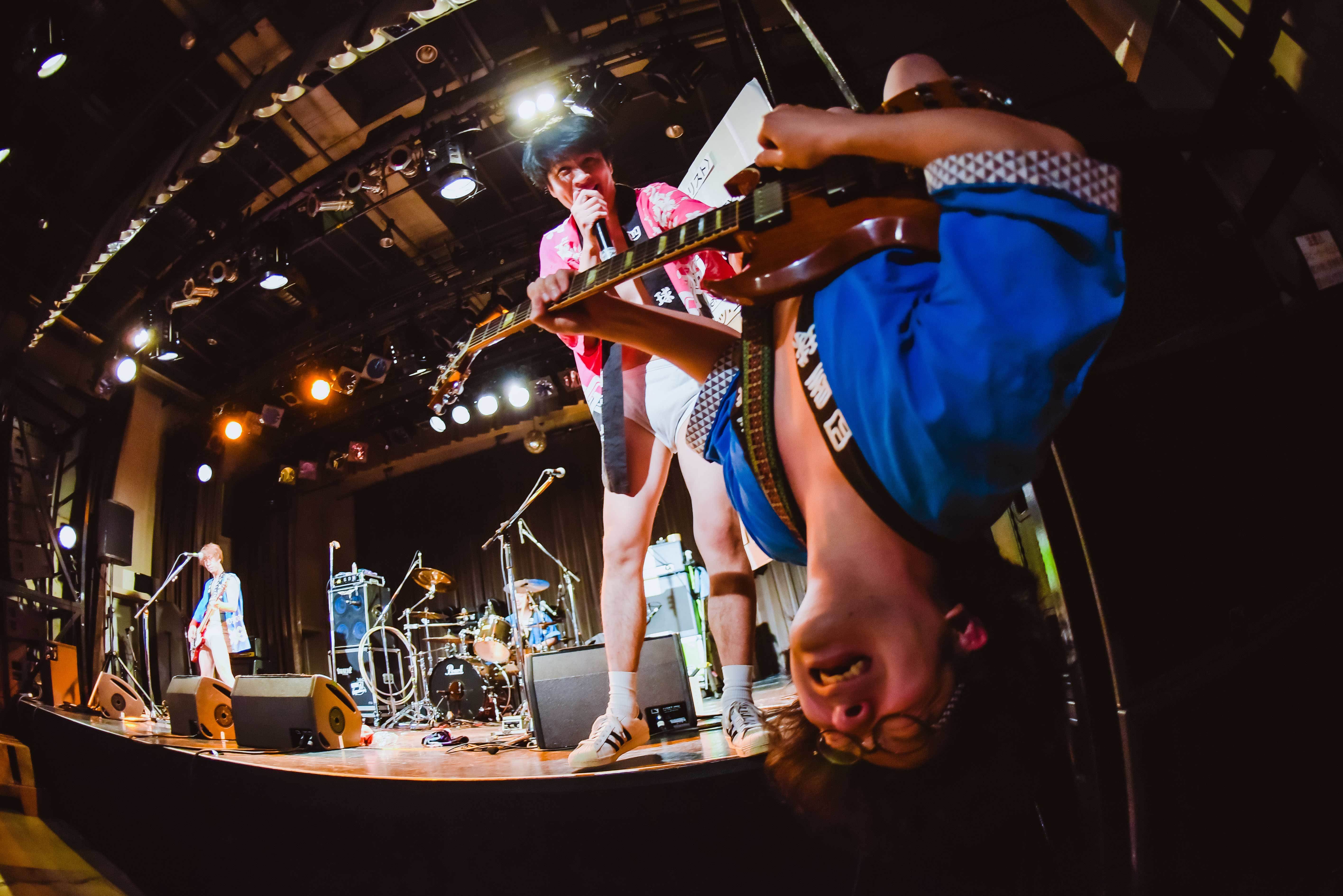2日目。11時10分から4会場でライブがスタートする中、商店街を歩いていると11時時点で「かじ笑店」に長蛇の列ができている。BiSが12時30分からトークイベントを行なうという。しっかりと朝から盛り上がりが伝わってくる。その長蛇の列を横目に商店街周辺を歩き、12時からオリーブホールで行われる四国出身の古墳シスターズを観ることに。四国出身と書いたが、詳しくは香川県高松市で結成されたバンド。完全なる地元バンドだが、初めてライブを観た率直な感想は、思っていた以上に真っ直ぐなパンクバンドであるということ。「ワンツースリーフォー!」というカウントが気持ち良いくらいに決まるし、ボーカルギターの松山航による「皆様お待ちかねのギターソロですよ!」なんていう言葉もいちいち真っ直ぐで気持ちが良い。「ベイビーベイビーベイビー」も、そのタイトルからしてドストレートすぎてワクワクする。