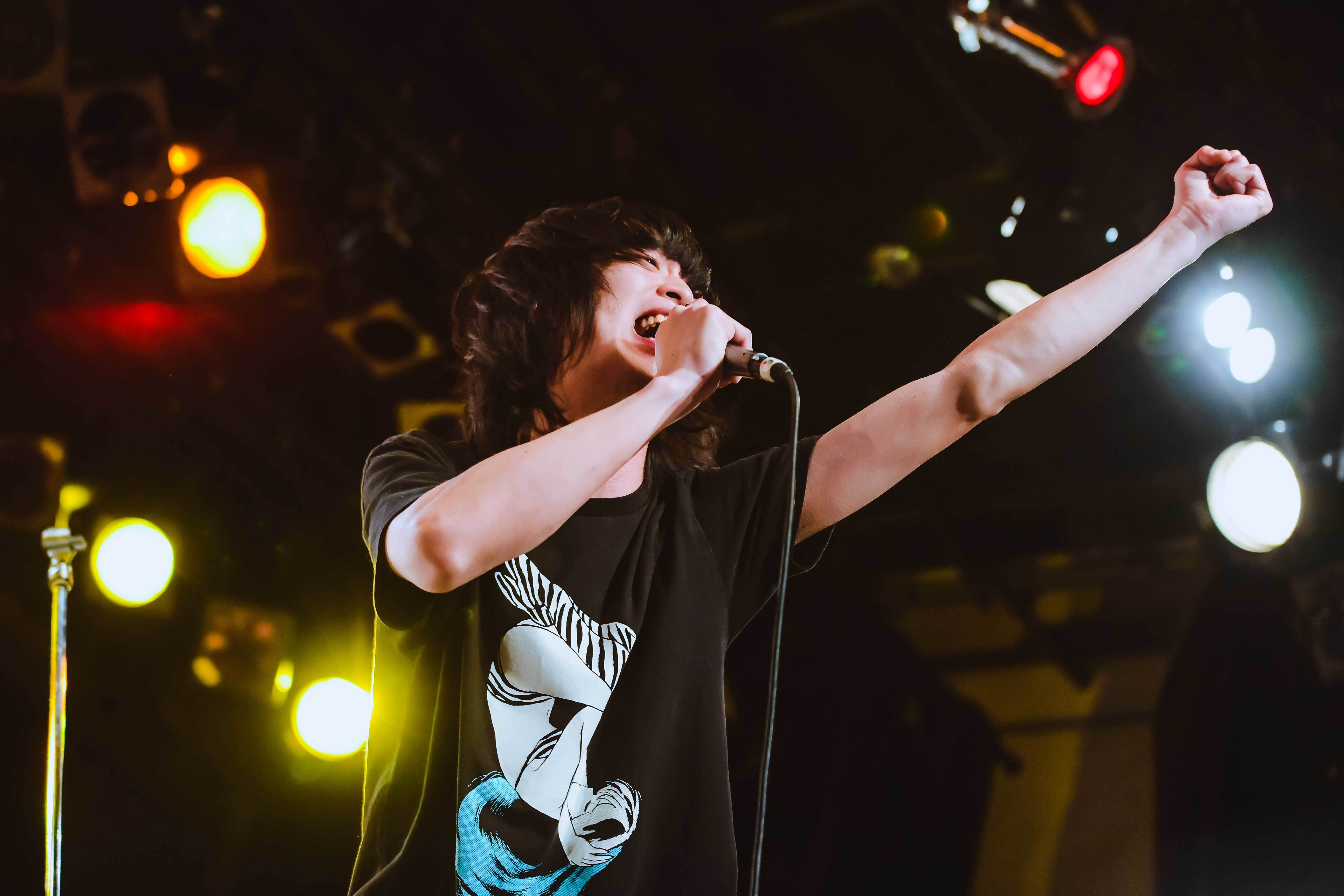 同年代の演奏陣による、その年代とは思えない、鉄壁な演奏にノリながら現れる映秀。。「だっせえ自分から脱せ」と歌われる「脱せ」。この曲を初出演のイベントの1曲目でぶつけてくる心意気が素敵である。ロックだけではなく、R&Bやジャズを感じさせ、個人的にはソウルやファンクも感じさせる音楽。音も歌も踊ってるからこそ、聴いてる側も心身ともに踊りたくなる。20歳になった3月17日(木)にリリースされた新曲「縁」では、<幾つになっても続けよう>と決意表明のように歌う。自問自答的なポエトリーリーディングから始まり、音も歌も踊り転がっていく「東京散歩」から、ラストは「喝采」。気付くと寝転びながら歌ってる。観客は一斉に手を上げており、その熱狂が伝わってくる。拍手喝采で終わったと書くのは簡単だが、本当に拍手喝采で終わらせた初出場の20歳。圧倒的な若さの強さを感じた。