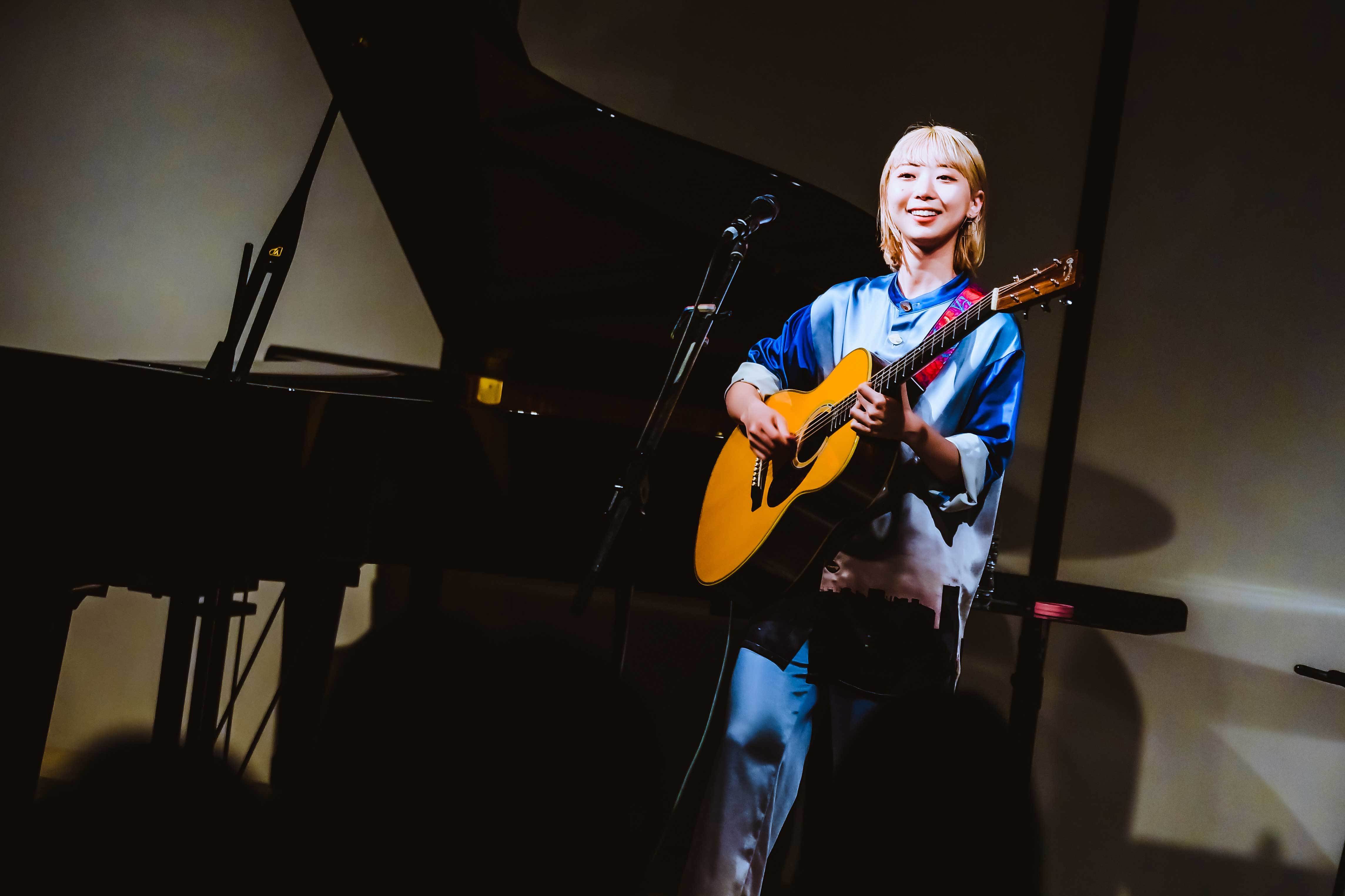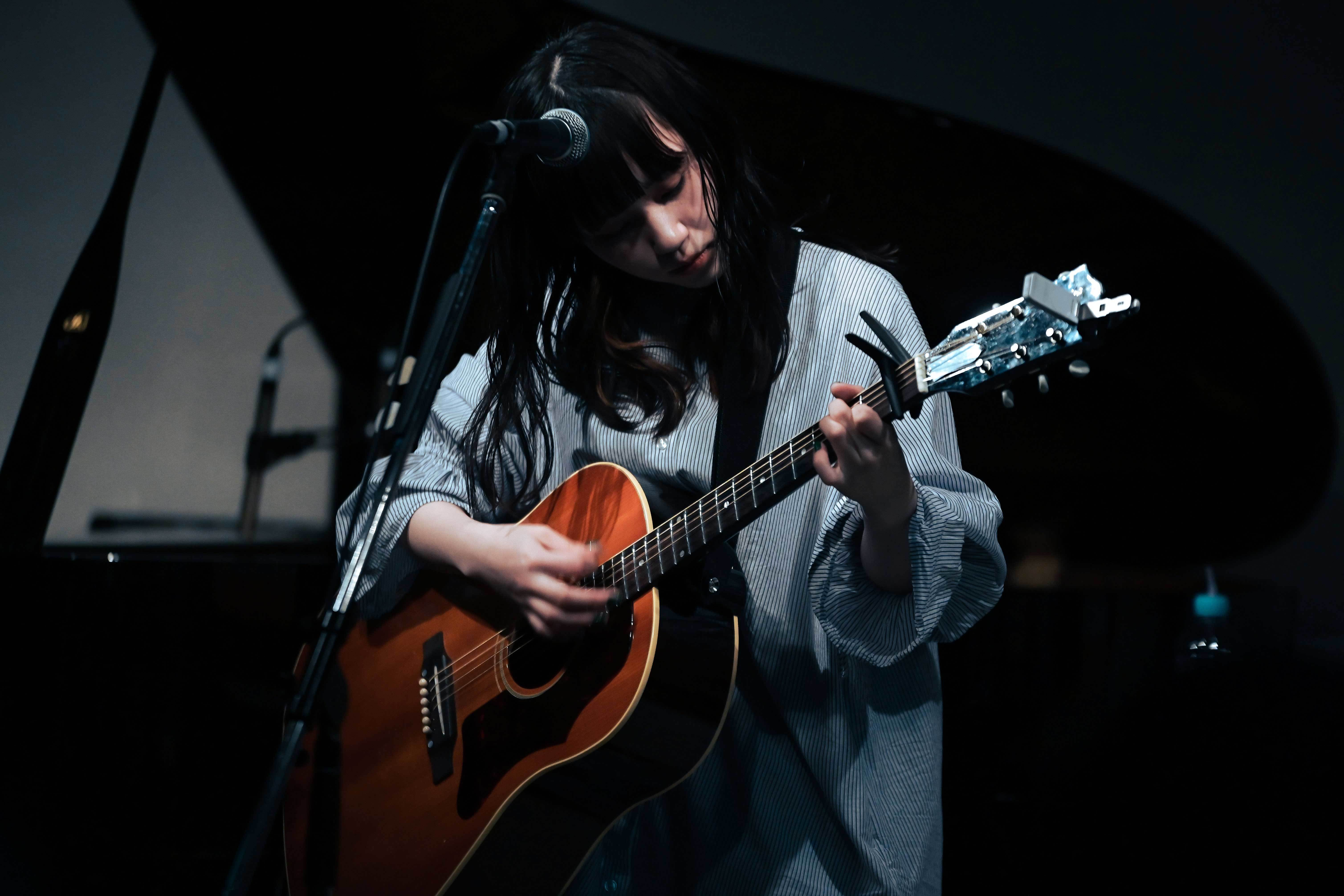 この緊張感、どこかデジャブのように体感したことがある気がして思い返してみると、2020年3月、彼女が『サヌキロック』に出演するはずだった日に、歌うはずだったという楽曲がSNSで披露されていたのだ。高校卒業してすぐの春で、初出演したかったという想いを痛切に感じたのを思い出した。この日も1曲目「君が生きる街」から大切に丁寧に、その場にいるひとりひとりに伝えたいという、強い念を感じた。そんな中でも新曲「星屑ドライブ」も初めて弾き語りで披露される。普段はバンドセットで歌われることが多いだけに、新曲の弾き語りは貴重であったし、この日この場で新曲を披露したいという心意気が嬉しかった。