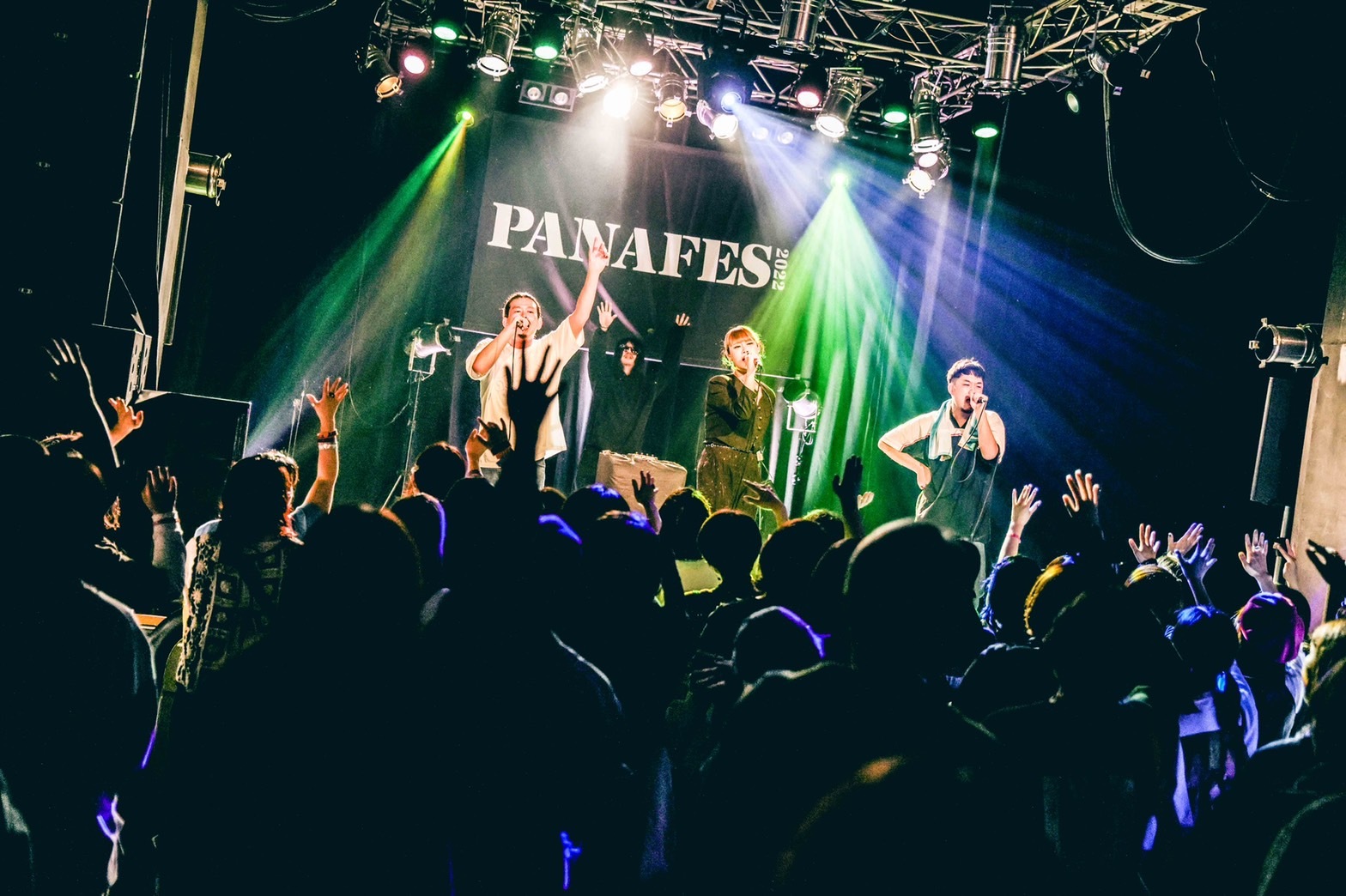 「皆さんありがとうございました! 来年、新開地で『パナフェス』、やりたいっすね! やります!」と、フリースタイル嘘話の伏線を回収。そして「規模がデカくなるわけじゃないですけど、ロマンをデカくしたいです。これからも『パナフェス』よろしくお願いします! 」と岩渕が締めくくった。最後は「いい趣味してるね」を全身全霊渾身のパワーで叩き込み、PPTのライブは終了。ずっと模索し続けようやく叶った3年ぶりの『パナフェス』。地元・神戸で開催できることも、PPTにとっては大きな意味がある。リラックスしたように笑顔を浮かべるメンバーの表情からそのことがよく伝わってきた。