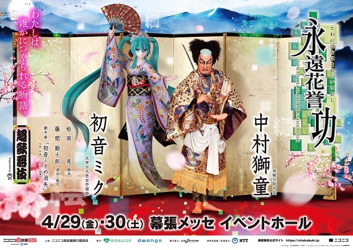「ニコニコ超会議2016」で初上演され、歌舞伎俳優とボーカロイドキャラクターの共演という全く新しい歌舞伎の形を実現した「超歌舞伎 Supported by NTT」。7年目となる今回は、『永遠花誉功(とわのはなほまれのいさおし)』と題し、新たに創作された演目を幕張メッセ・イベントホールで上演される。