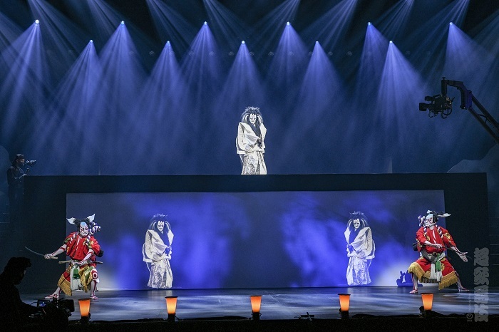 中村獅童と澤村國矢が繰り広げるヒーローショーさながらの迫力ある正義の味方の金輪五郎今国と悪人の蘇我入鹿の対決や、初音ミク演じる苧環姫の隠された真の姿とは、など見どころ満載。さらに、ボリュメトリック技術を取り入れたダイナミックな映像や、NTTが開発した超高臨場感通信技術「Kirari!」を活用した“分身の術”などのわずかな色の違いでも被写体と背景を識別して、精度高く切り出せるNTTならではのデジタル演出技術にも注目だ。