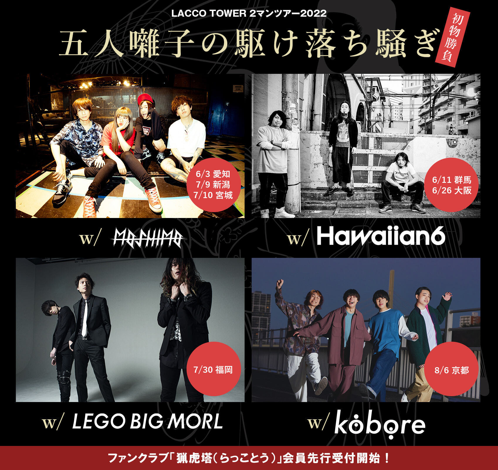 2022年に結成20周年を迎えたLACCO TOWERが、ツーマンツアー『五人囃子の駆け落ち騒ぎ~初物勝負~』の開催を発表した。