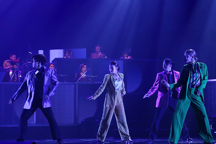 バンドメンバーが際立つシーンも多く、心地よいベースラインや艶のある管楽器のソロパートは聴き応えたっぷり。香取とコーラスメンバーとの掛け合いも大きな見どころと言えるだろう。香取を引き立てながらも楽曲の世界を広げるダンサーたちも見逃せない。歌詞に合わせて気怠げな色気を醸し出したり、駆け引きを繰り広げたりといった活躍によって、楽曲の新たな魅力や解釈に気付かせてくれる。舞台上で繰り広げられるセッションが楽しく心が弾む約90分間。それぞれの楽曲が持つ個性が存分に引き出されており、贅沢で充実した時間を満喫できた。