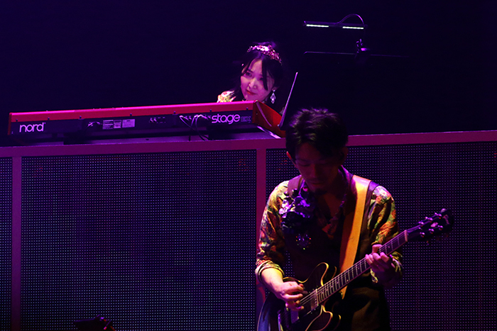 3曲目は1stアルバム収録曲より「I‘m so tired」。挑発するような視線と冴えわたるダンスから目を離せない。攻撃的で皮肉めいた歌詞と力強い歌い方もマッチしている。続く「今夜最高ね」は柔らかく温かい声で歌っており、ポップだがしっとりとした印象。歌詞にある月夜を連想させる照明が甘く大人な雰囲気をアップさせている。