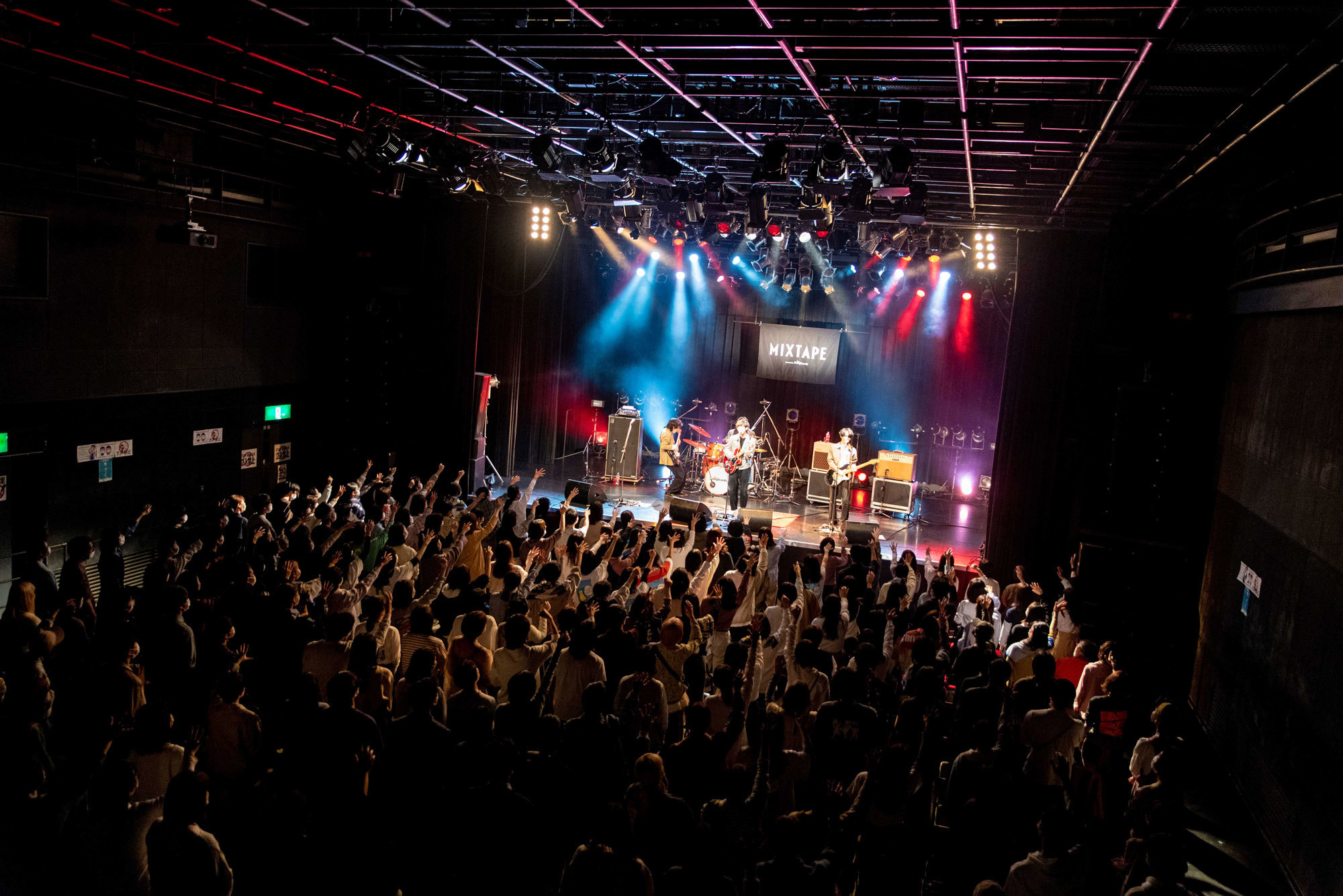 「好きな曲を入れたカセットテープを、友達同士で貸し借りをするように音楽を共有したい」という想いから対バン形式ではじまったこのシリーズも11回目。来場者に配布される恒例のZINEには、出演者全員が選んだプレイリストが掲載されている。今回のテーマは、「大合唱したい。みんなで歌えるプレイリスト」。開演前や転換前に読むと、2組の趣向や音楽への愛を知ることができて興味深い。またフェスで大合唱できたら──想いがこもったプレイリストを見ていると、そう願わずにはいられない。