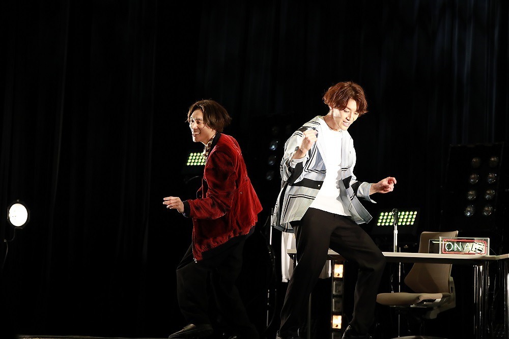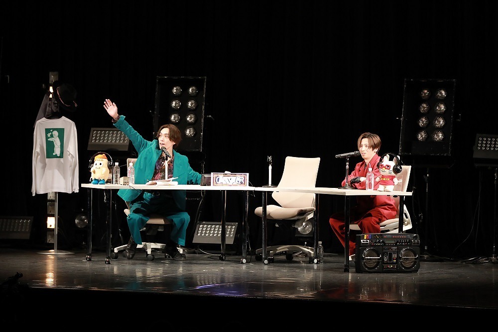 終始和やかに進んだ『RADIO BOX』も、いよいよ終盤。ステージに残った千葉は「濃厚だった」と振り返り、平間は「本当に試行錯誤しながら作っています。これからもいろんなことを考えながら、いろんな形でイベントをやれたらいいなと思います」と、これからの展望を語った。そして、ラストナンバーのNSYNG『POP』を平間、千葉、青柳、太田、新原の5人でパフォーマンス。見事な5人のシンクロ、個性豊かなソロパートと、見どころ満載の力強いダンスに、この日一番の大きな拍手が贈られた。一度ステージを捌けたメンバーは、鳴り止まない拍手に応えてもう一度ステージへ。千葉とかたく抱き合った平間は、「今、ちょっと泣きそうになっちゃった」と破顔する。再び青柳、太田、新原を呼び込み、「本当にありがとうございました」と感謝の思いを述べ、大団円を迎えた。
