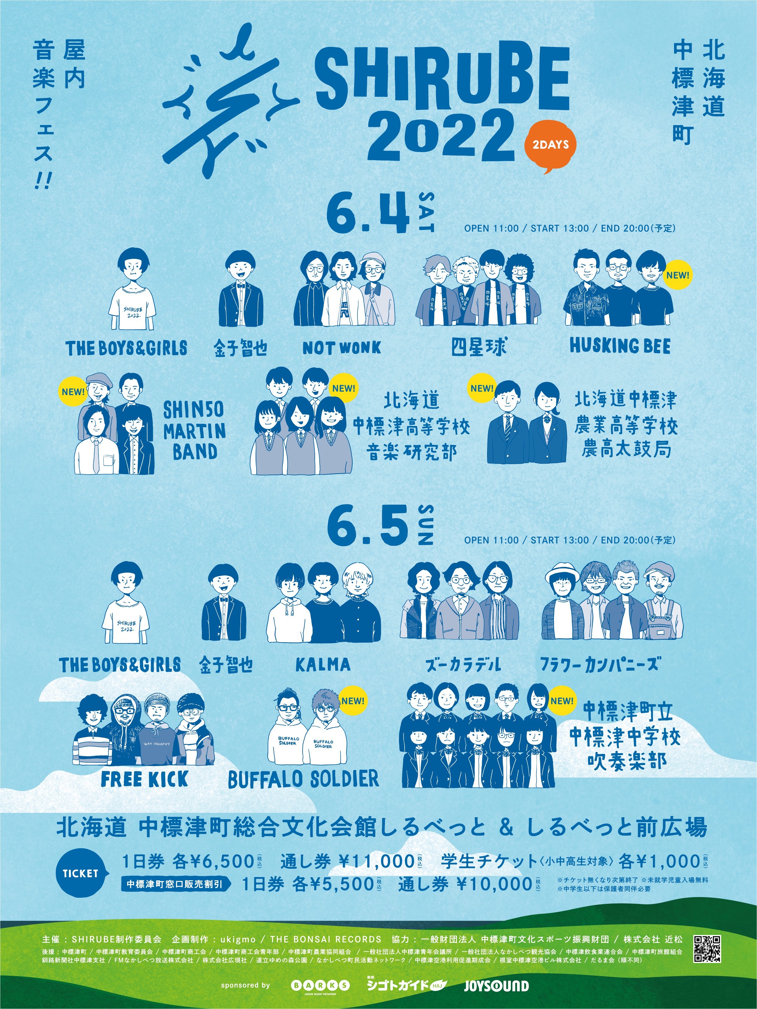 6月4、5日に北海道・中標津町総合文化会館しるべっと&しるべっと前広場にて開催される屋内ライブイベント『SHIRUBE 2022』の追加アーティスト発表と、日割りが解禁された。