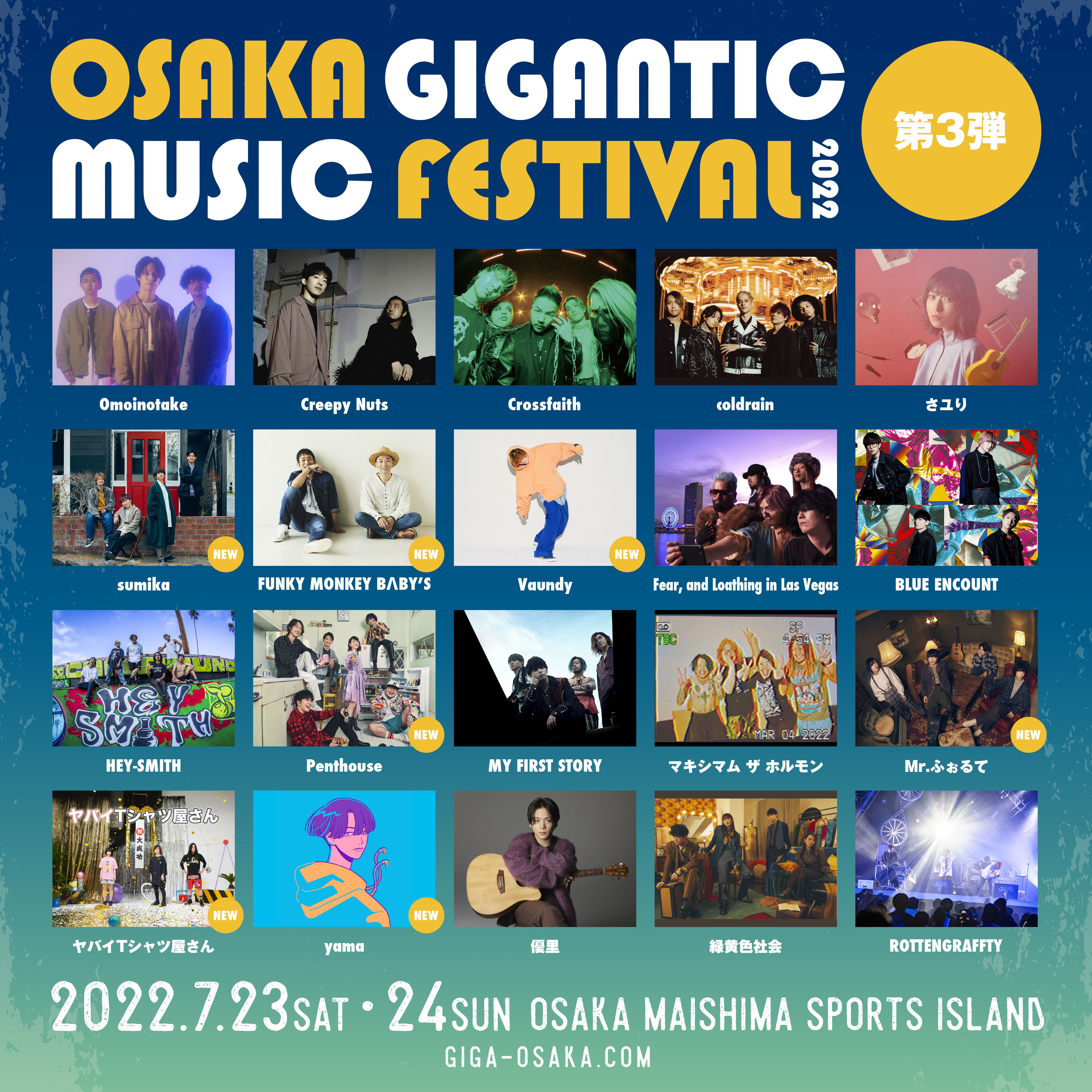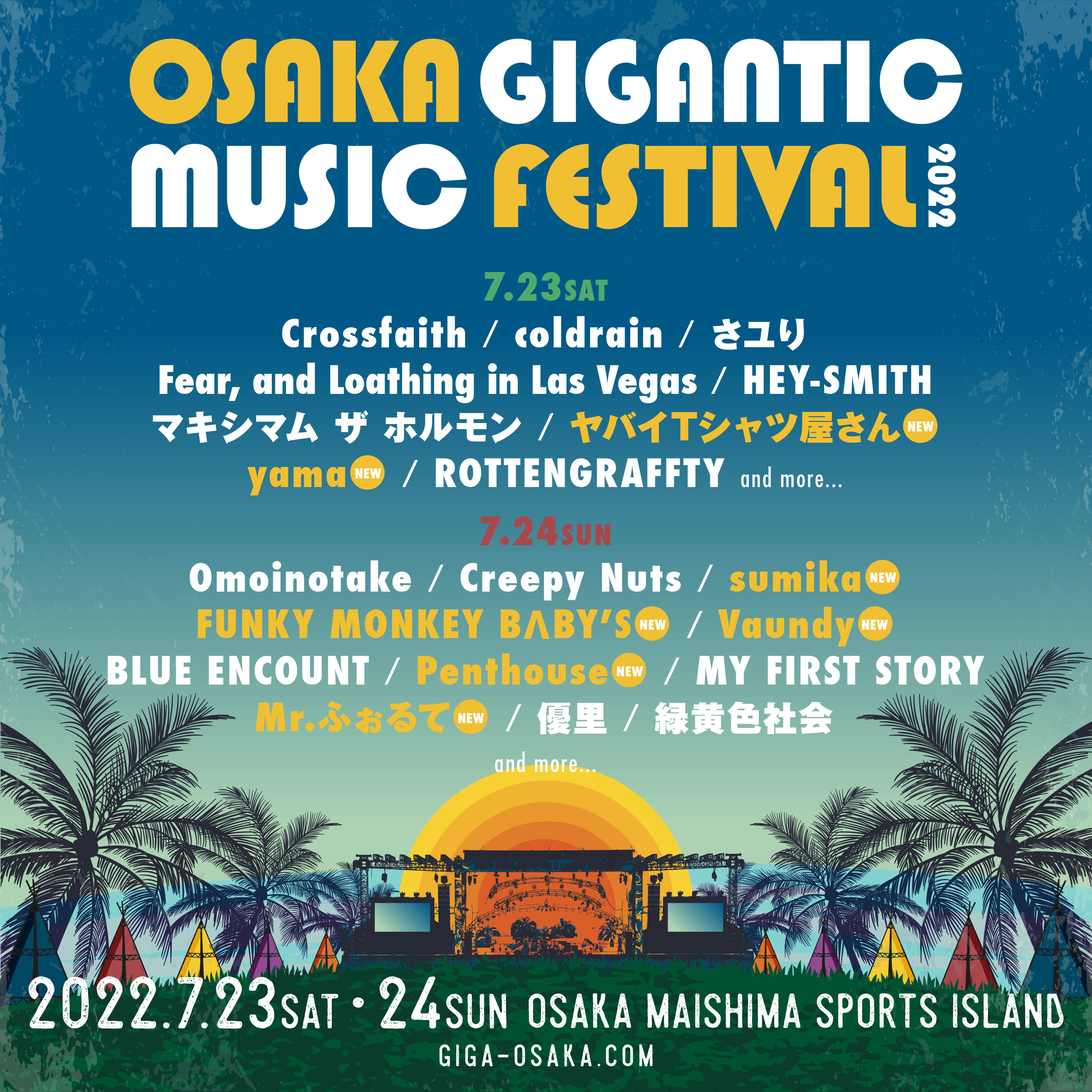 関西の定番の夏フェス「ジャイガ」こと『OSAKA GIGANTIC MUSIC FESTIVAL 2022』の第3弾出演アーティストが発表となった。