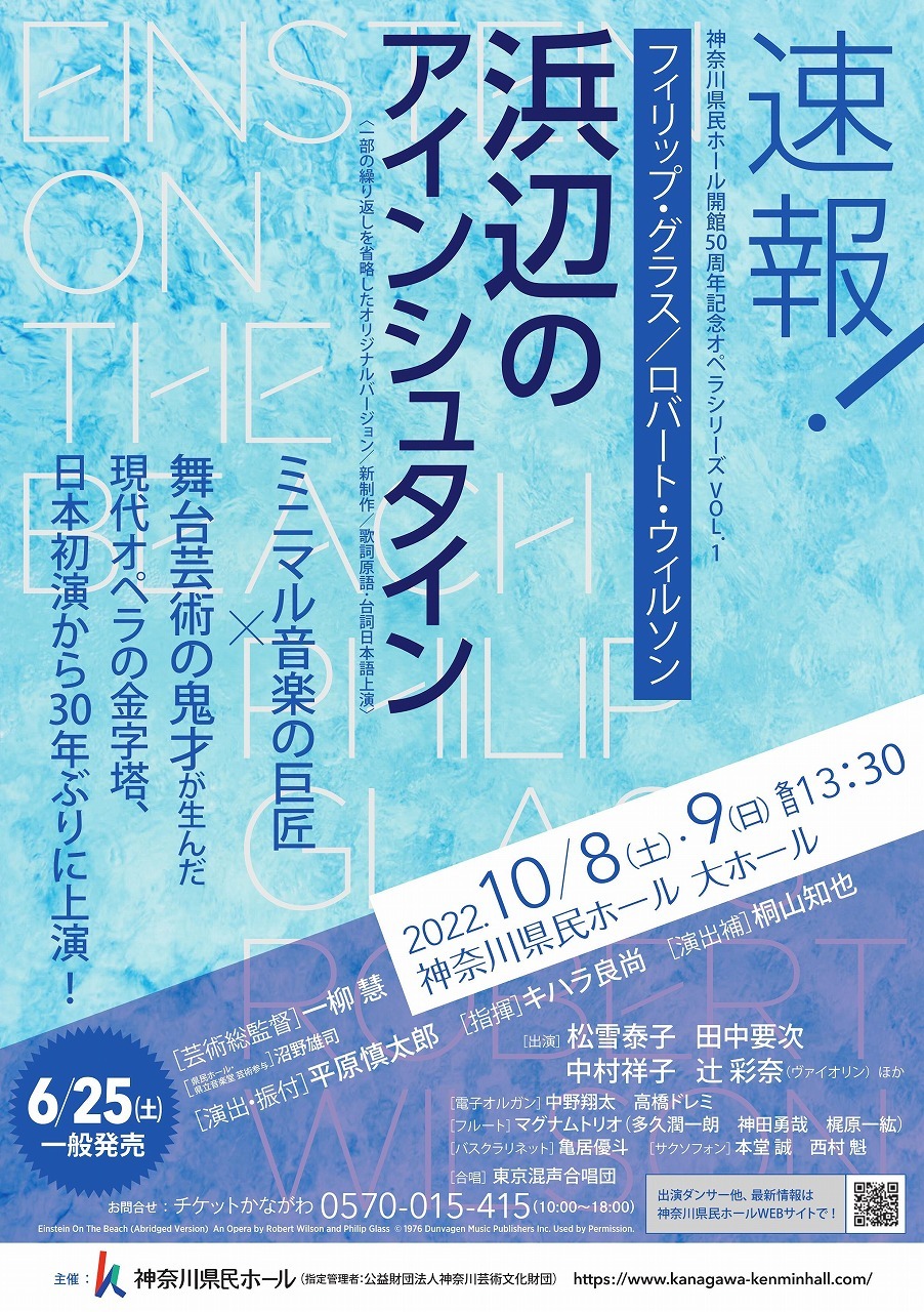 1975年の開館した神奈川県民ホール。これまで多彩なオペラ上演を続けてきたが、この度、日本を代表する作曲家・ピアニストである一柳慧芸術総監督のもと、2025年の開館50周年を記念して、そこに至るまでの3年間、毎年様々なテーマで革新的な舞台芸術を創造発信する「開館50周年記念オペラシリーズ」を開始する。そして、第1弾となる2022年の公演では、音楽+舞踊をテーマに、オペラ『浜辺のアインシュタイン』を新制作する。