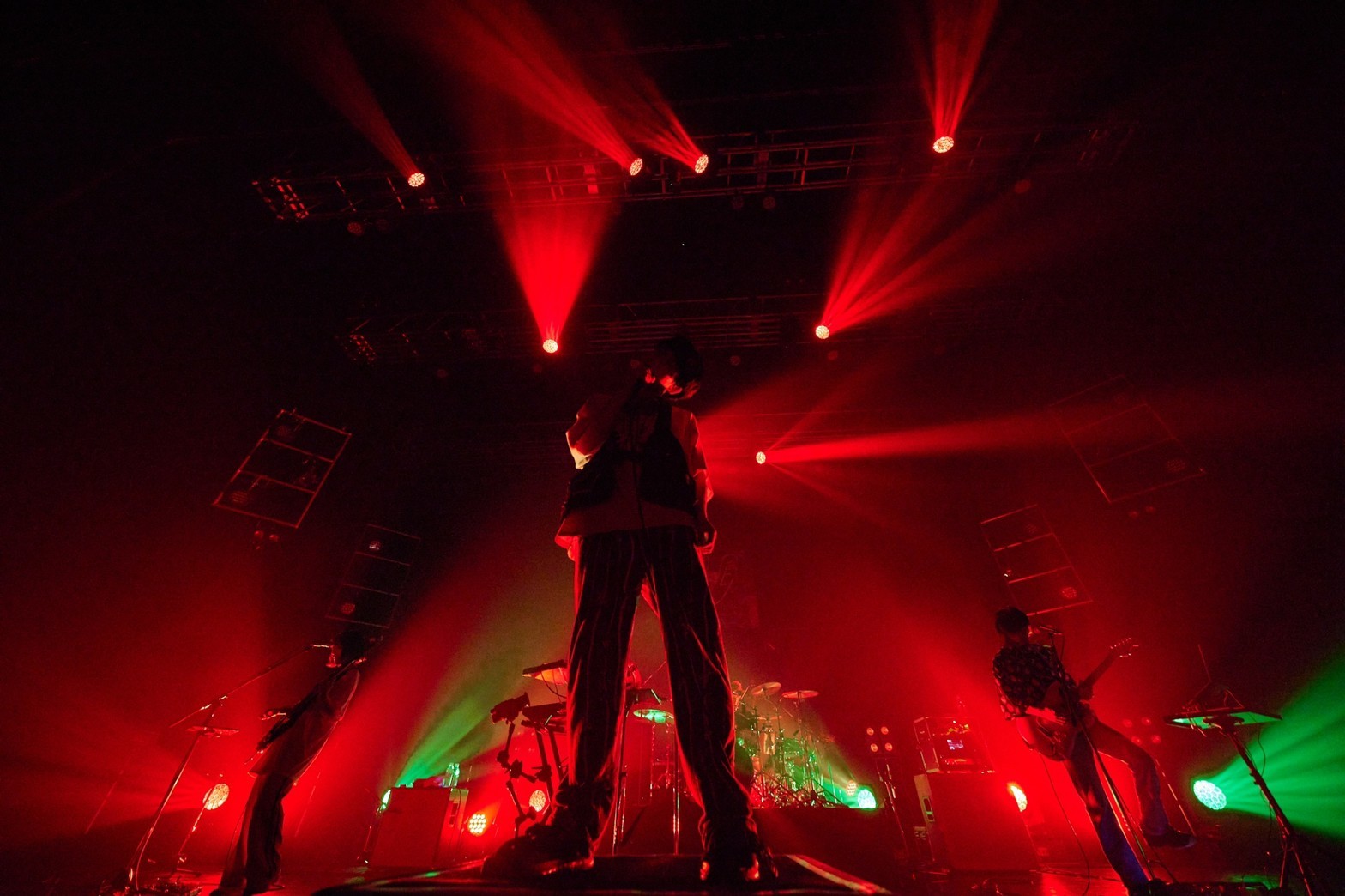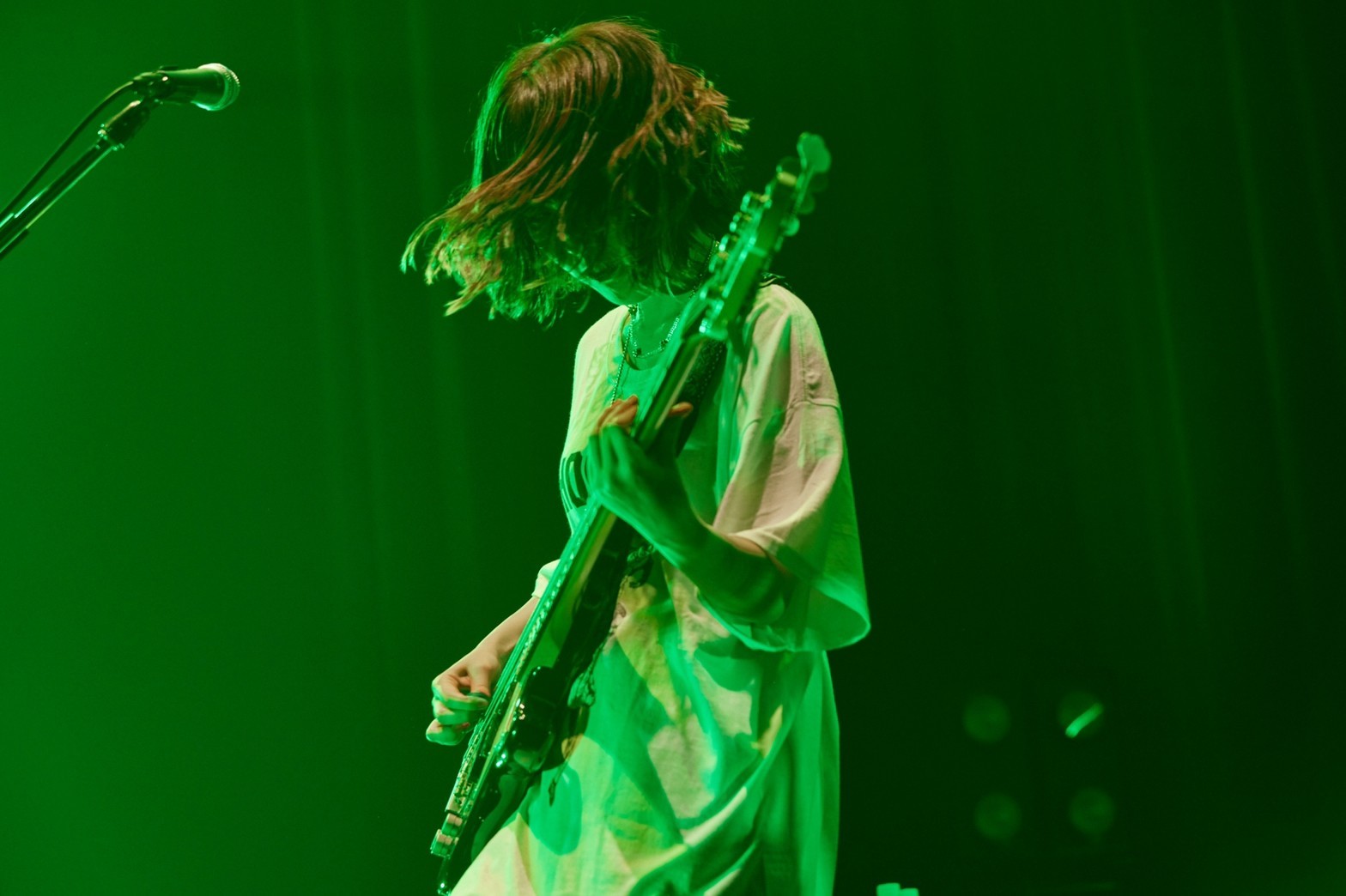 MCでは「広っ!」「ヤバい!」「サイコー!」と口々に叫ぶメンバー。大樹は「2階席見えてるかい!」と手を振る。「これは、ビッグな気持ちだね。ブルーな気持ちとかあるじゃん。これはビッグな気持ち」。独特すぎる表現でZeppのステージに立てた喜びを語るくぅ。「正直、めっちゃ緊張するかなと思ってた。昨日は寝れなかった。加湿器をガンガンにつけたら強すぎて溺れそうになったから。それぐらい気合が入っているライブだし、感謝も伝えないといけんライブなので」と、さらにややこしい表現でこのライブに懸ける意気込みを口にする。来てくれたお客さんに「ここまで連れてきてくれてありがとう。このバンドでやることを決断してよかった。間違ってなかったと思う」と心からの感謝を述べる大樹をはじめ、かほも夕日もここまで来た感動やこのツアーで得た手応えを語り、ライブは「下僕な僕チン」から怒涛の後半戦へ突入していく。