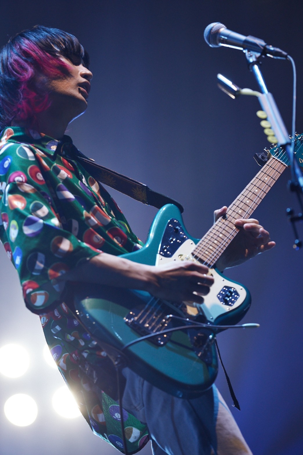 「ボキは最強」ではゴーグルをかけたくぅとお客さんがヒーローポーズを決め、夕日とかほのソロバトルも展開。「Zeppいいな!」とくぅは興奮気味に声を上げる。続く「万事思通」ではフロアから手拍子が巻き起こり、そこから一転して静かなピアノの音色とともに始まった「本当は泣きそうです。」、そしてまたまた一転してバキバキのギターリフが炸裂する「九鬼」へ。ライブならではのアレンジも施された楽曲たちが、序盤からめくるめく展開でカオティックにぶっ放されていく。くぅの「今日はよろしくお願いします!」という短い挨拶を経て「ぱくちー」へ。夕日の渋いギターソロが鮮やかに鳴り響く中、ヘビーな歌詞とは対照的なかわいらしいサウンドでほっと一息ついたのも束の間、「因果オウホウ」の爆音でアドレナリンを大放出。その後も「第一次世界」「人外」とNEEらしいひねくれたアンサンブルとそれを凌駕するエモーションが溢れ出す楽曲でライブの空気を一変させていく。アルバム『NEE』によって広がった音楽のビジョンを完全に血肉化した、NEEの進化形がライブにダイナミックな物語となって繰り広げられていく。