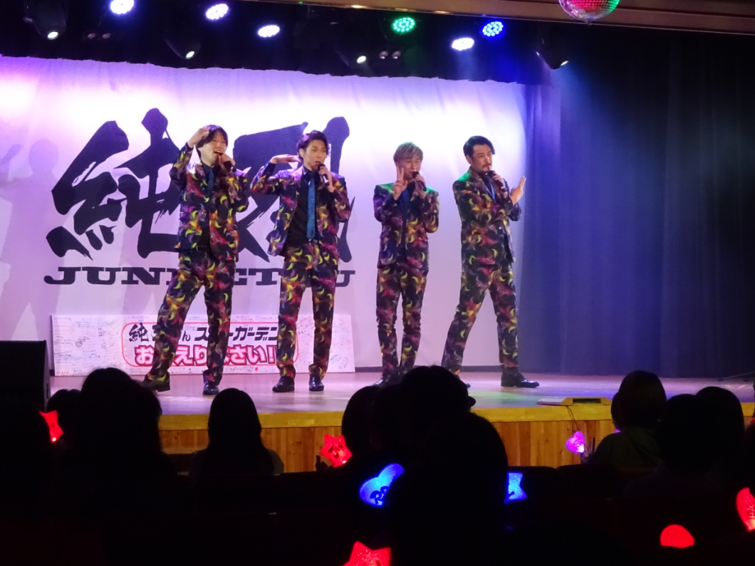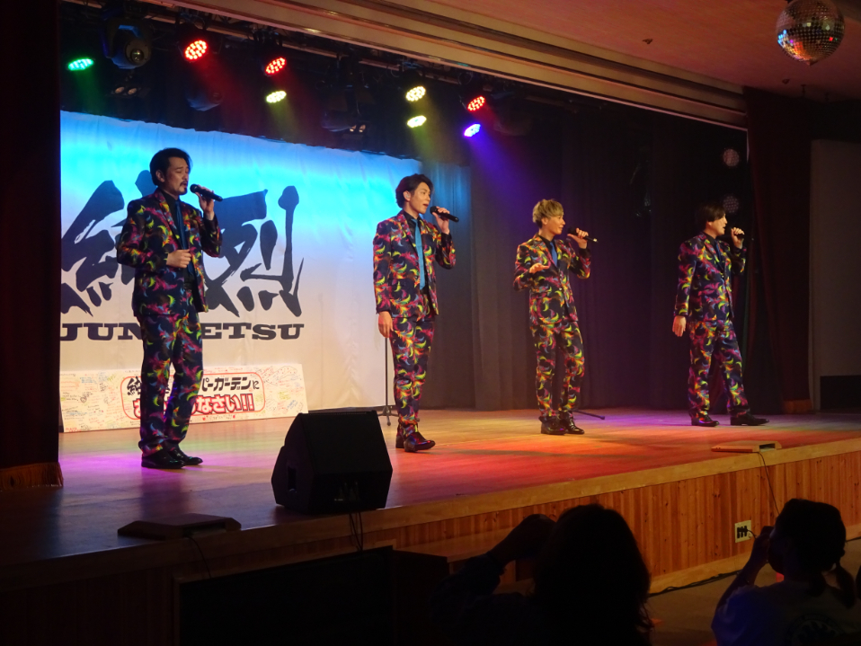 4月24日、“スーパー銭湯アイドル”純烈が、大阪・箕面温泉スパーガーデンでライブを開催した。