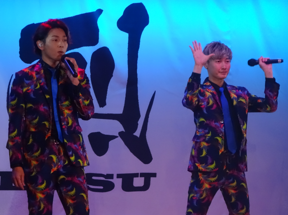 オープニングは、今年も年末の大舞台での歌唱を目指す新曲「君を奪い去りたい」でスタート。昨年2021年秋に公開され、すでにパート2製作も発表されている映画『スーパー戦闘 純烈ジャー』の挿入歌「勇気のペンライト」、同映画の主題歌「NEW(入浴)YORK」と激しいロック調の曲が続く。東京理科大学中退で数学が得意な後上翔太が「792日ぶり」と数字を言うと、リーダーの酒井一圭は久しぶりにこの場所に帰ってこられた喜びを語りつつも「ここは戦場。1番勝負しなきゃいけない場所。ここで負けたらスーパー銭湯アイドルじゃなくなる」と意気込みを語った。