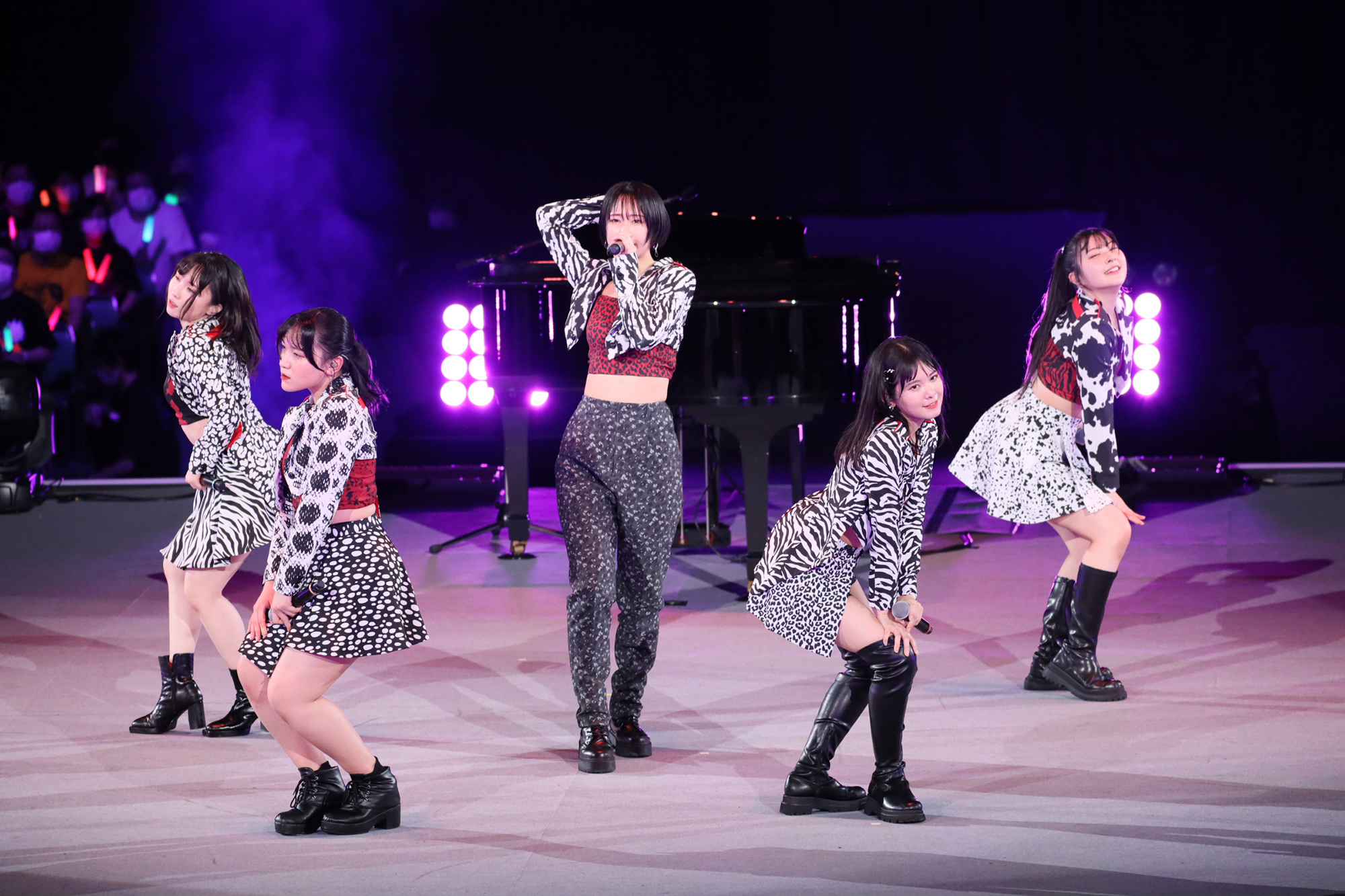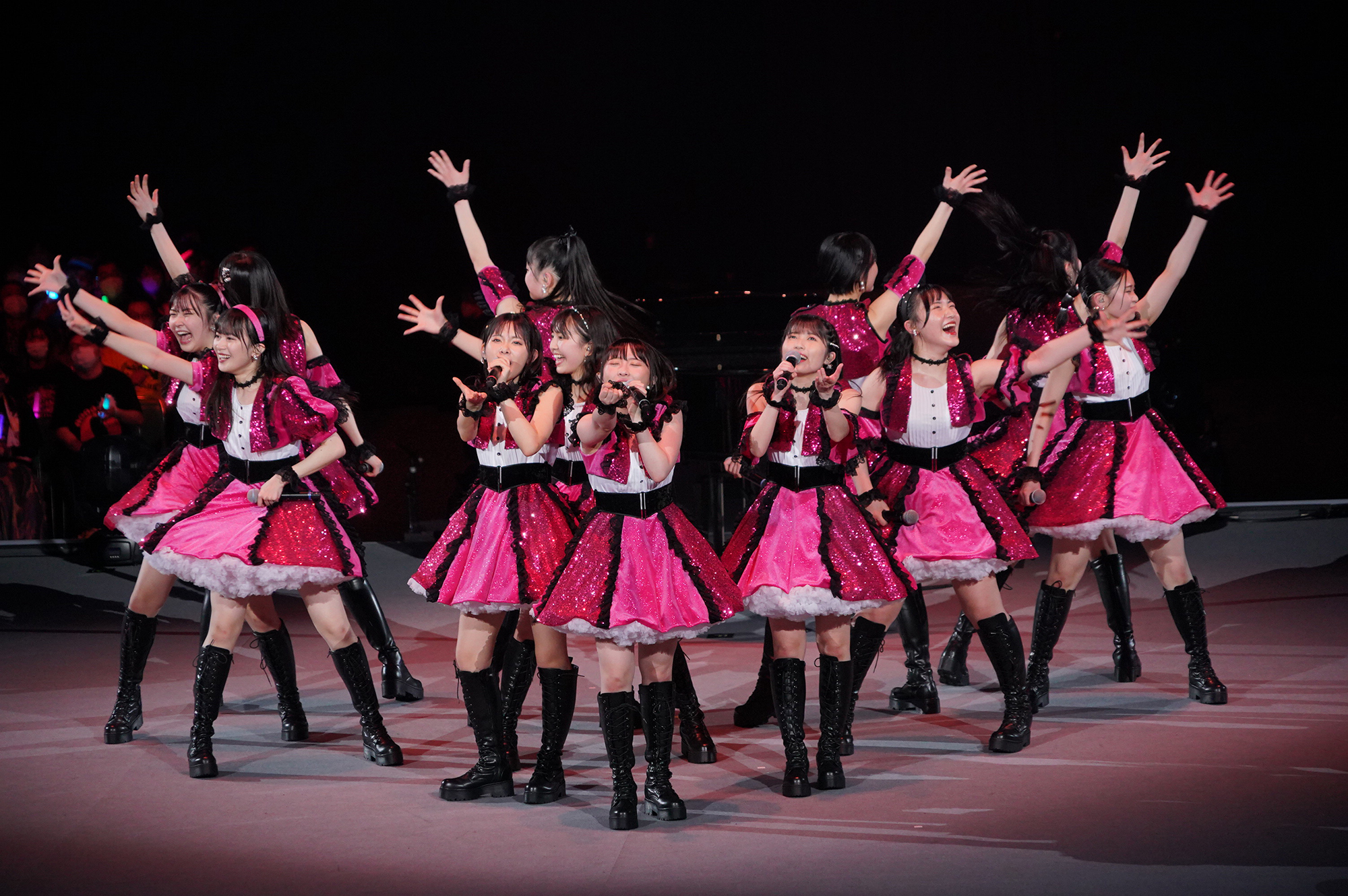各ユニットのパートの後、舞台にはBGMが。ここで清野桃々姫による講談から、ハイブリッド寸劇「眼鏡くんは罪なやつ」と称したブロックへと突入する。最初に披露されたデビュー曲「眼鏡の男の子」からブロックラストの「こんなハズジャナカッター!」まで、全く異なる楽曲を勢いで一つに繋げてしまうのは、この12人がデビューから培い続けてきたコンビネーションと存在感の為せる技だ。
