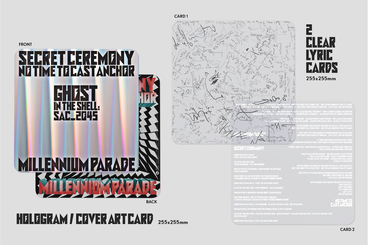完全生産限定盤“STEALTH MOTOKO EDITION”は『攻殻機動隊』の光学迷彩をモチーフにしたと仕様。millennium paradeのメンバー・PERIMETRONが手掛けた『攻殻機動隊』の草薙素子の3Dモデルを使用したブリスターケースにCDが納められる。また、特典として没入型デジタル音楽フェス『Splendour XR』にて披露したmillennium paradeのライブステージを収録したBlu-ray Disc、歌詞が掲載された2枚のクリアカードとホログラム/カバーアートカードを収納となる予定だ。