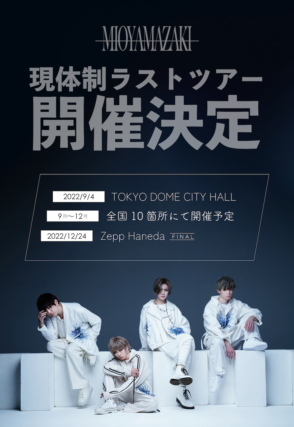 4人組ロックバンド・ミオヤマザキのtaka(Gt)とShunkichi(Ba)が12月24日のZeppHaneda公演をもって脱退することが発表され、同時に4人体制でのラスト全国ツアーの開催が決定した。