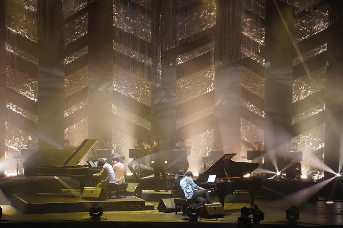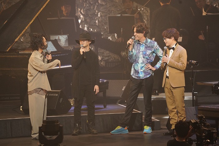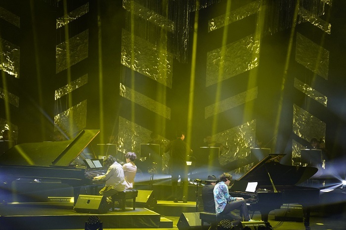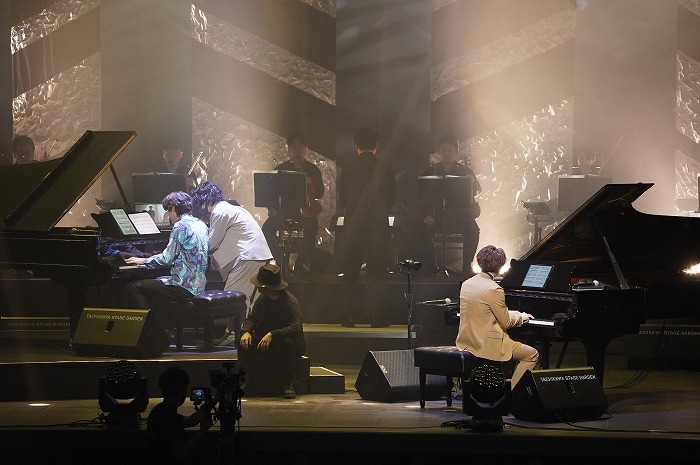 最後は「ジャズとクラシックの間にある曲をやろう」というござの提案で、《ラプソディ・イン・ブルー》を披露することに。ストリングスチームを再度招くと、石井や菊池が演奏するピアノをござが行き来しながら演奏するなど、トリッキーな時間も。4人それぞれの個性が光るステージで、会場を歓喜の渦で包み込んでいた。