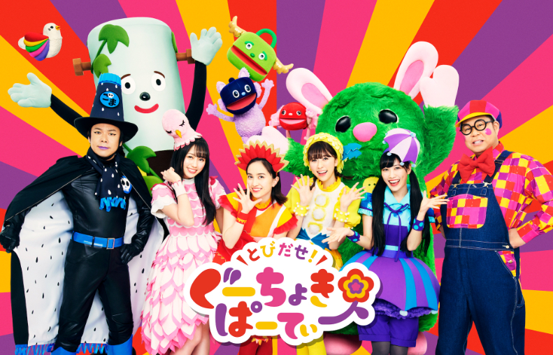 『とびだせ!ぐーちょきぱーてぃー』は、ももいろクローバーZ扮するももくろちゃんZによる幼児向け知育バラエティ番組。現在、ひかりTVなどにて放送・配信中だ。番組では、ももくろちゃんZが歌やダンスに加え、リズムゲームや、クイズ形式で身近なものを当てるコーナー、新感覚のだじゃれ、言葉遊びなどを通して、全国の子供たちと一緒に遊び、一緒に学んでいく。