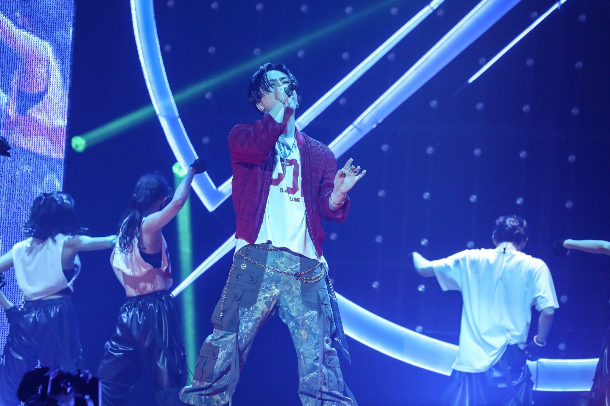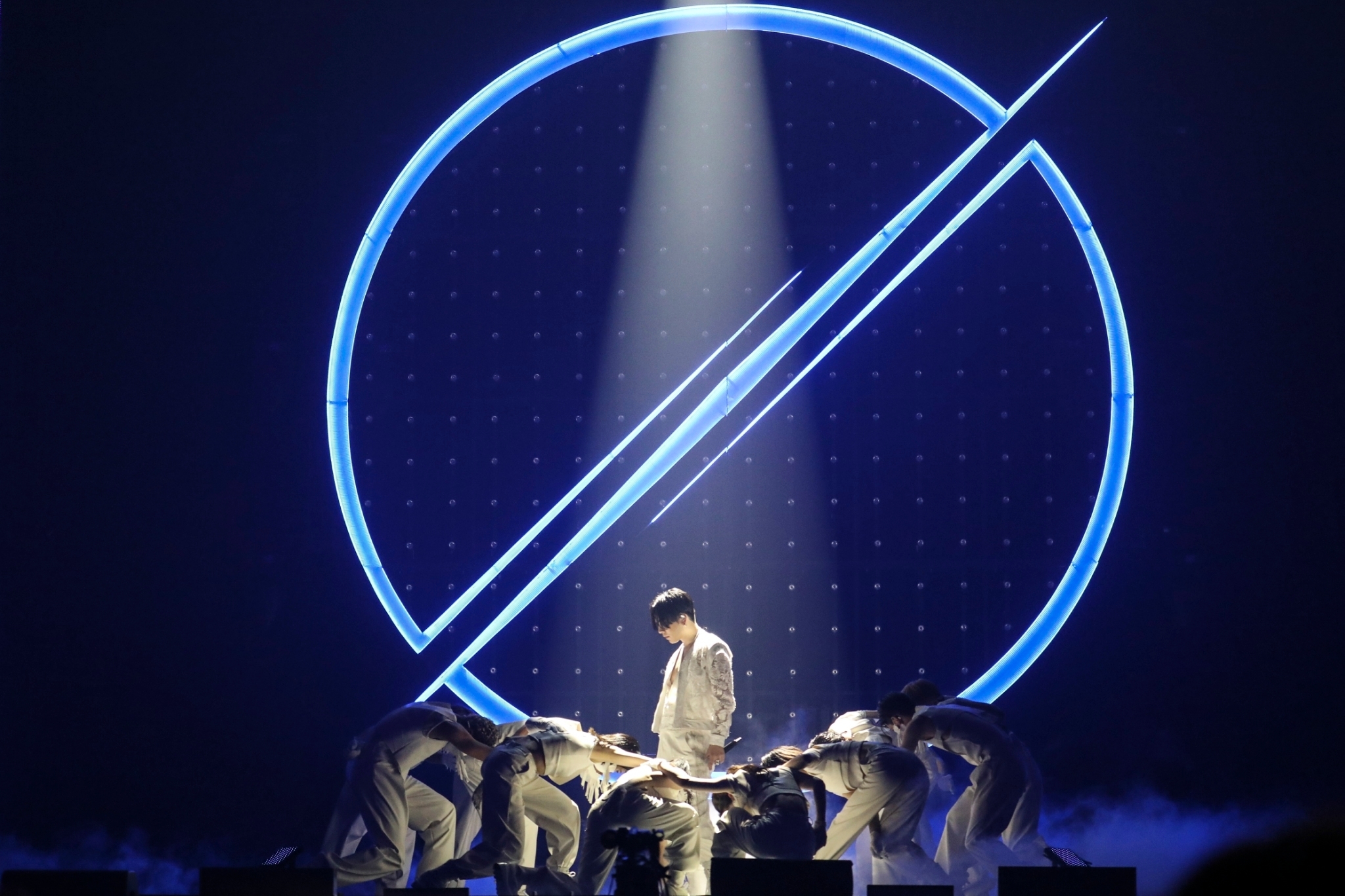 バックダンサーなしでパフォーマンスされた「Give up」は、海に潜ったような映像とリリックが泡になって消えていく演出が神秘的。ØMIの最後の歌も海に溶けていくと、再びダンサーを従え「Colorblind」へ。月が映る演出をバックに群舞を見せてから、アウトロで全員が退場した。