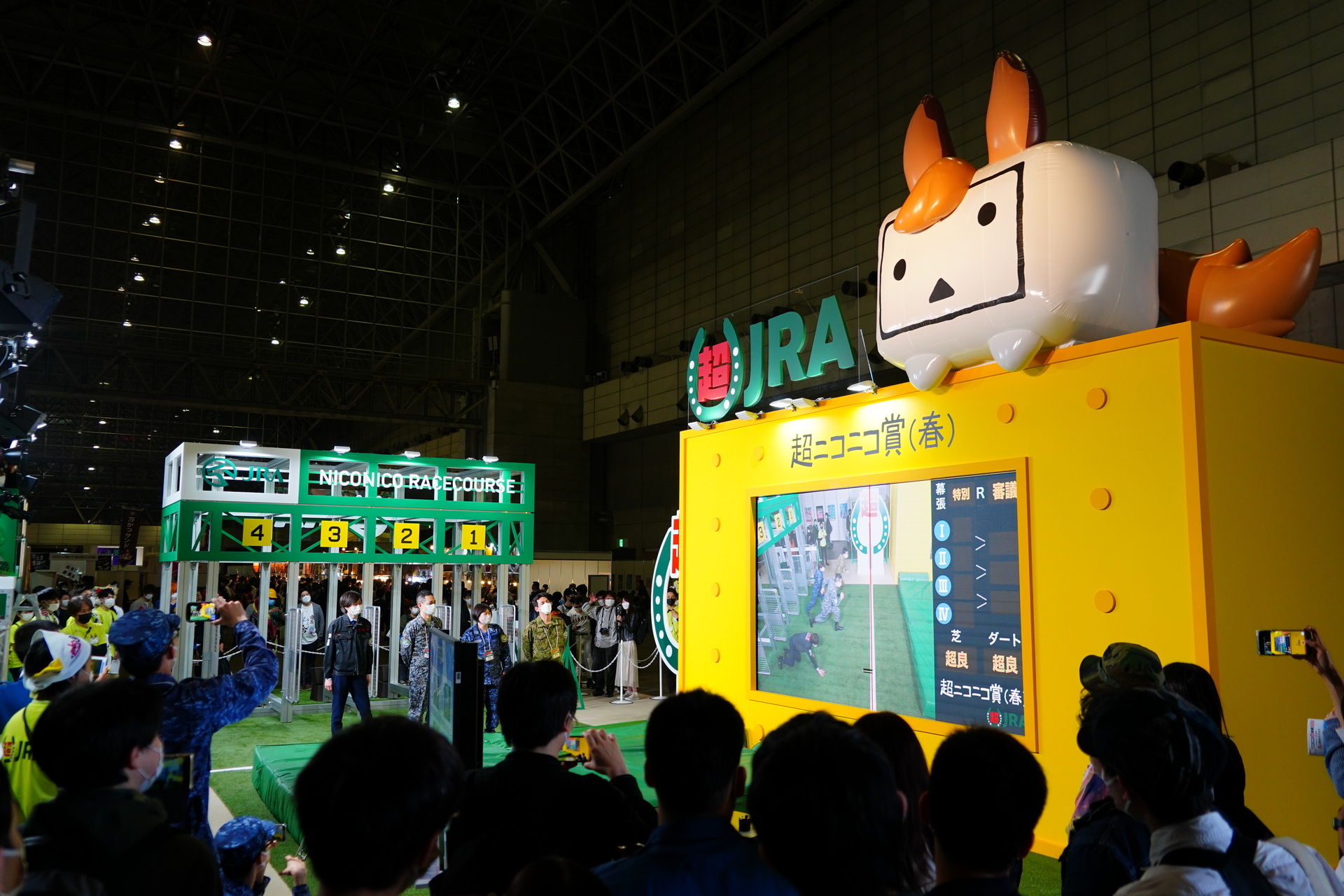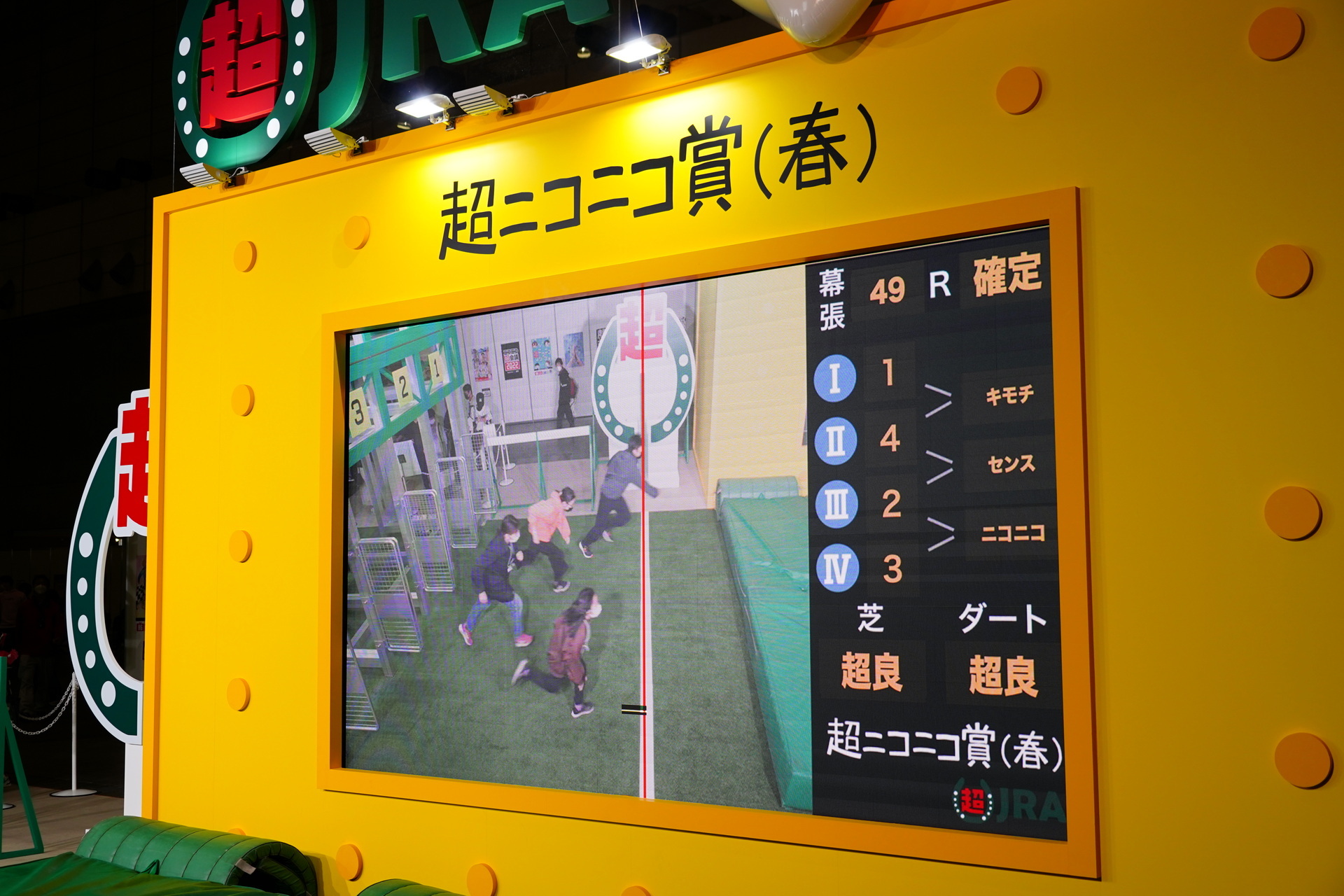 「超JRA 超ニコニコ賞(春)」では人間用のゲートに入ってダッシュ競争で競うアトラクションが。多くの参加者がウマ娘気分を味わえたかも?