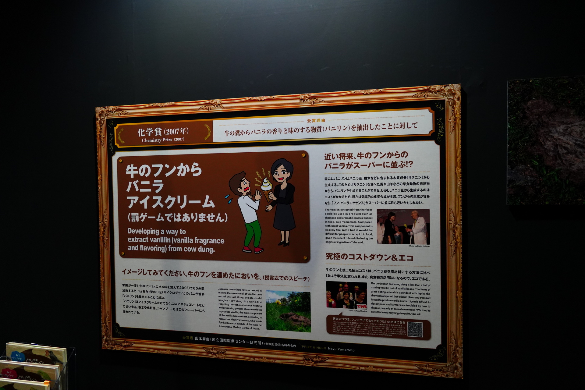 ネットでは話題になるけどなかなか実態が知られていない「イグ・ノーベル賞」の特設ブースも登場。その詳しい歴史や実際の受賞作品などについて楽しく学ぶことができた。