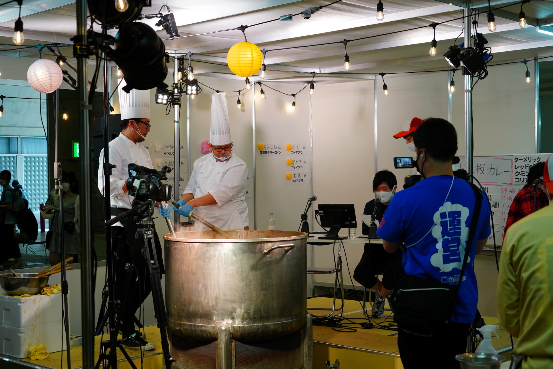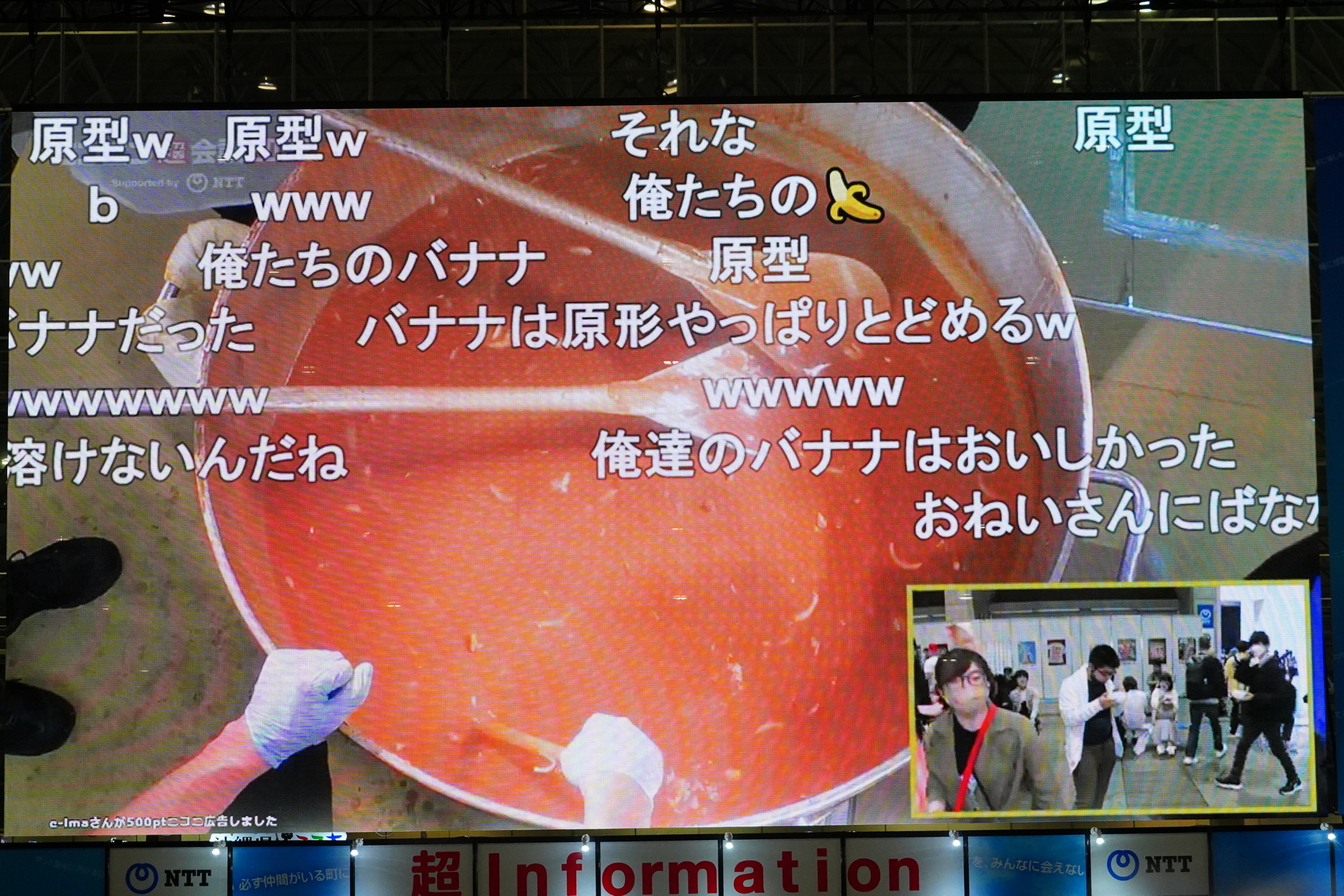 様々な美味が集まった「超フードコート」の目玉は、ネット参加者の具の差し入れによって味が変化していく「差し入れ超カレー」。ここでしか食べられない味を楽しもうと終始行列が絶えなかった。