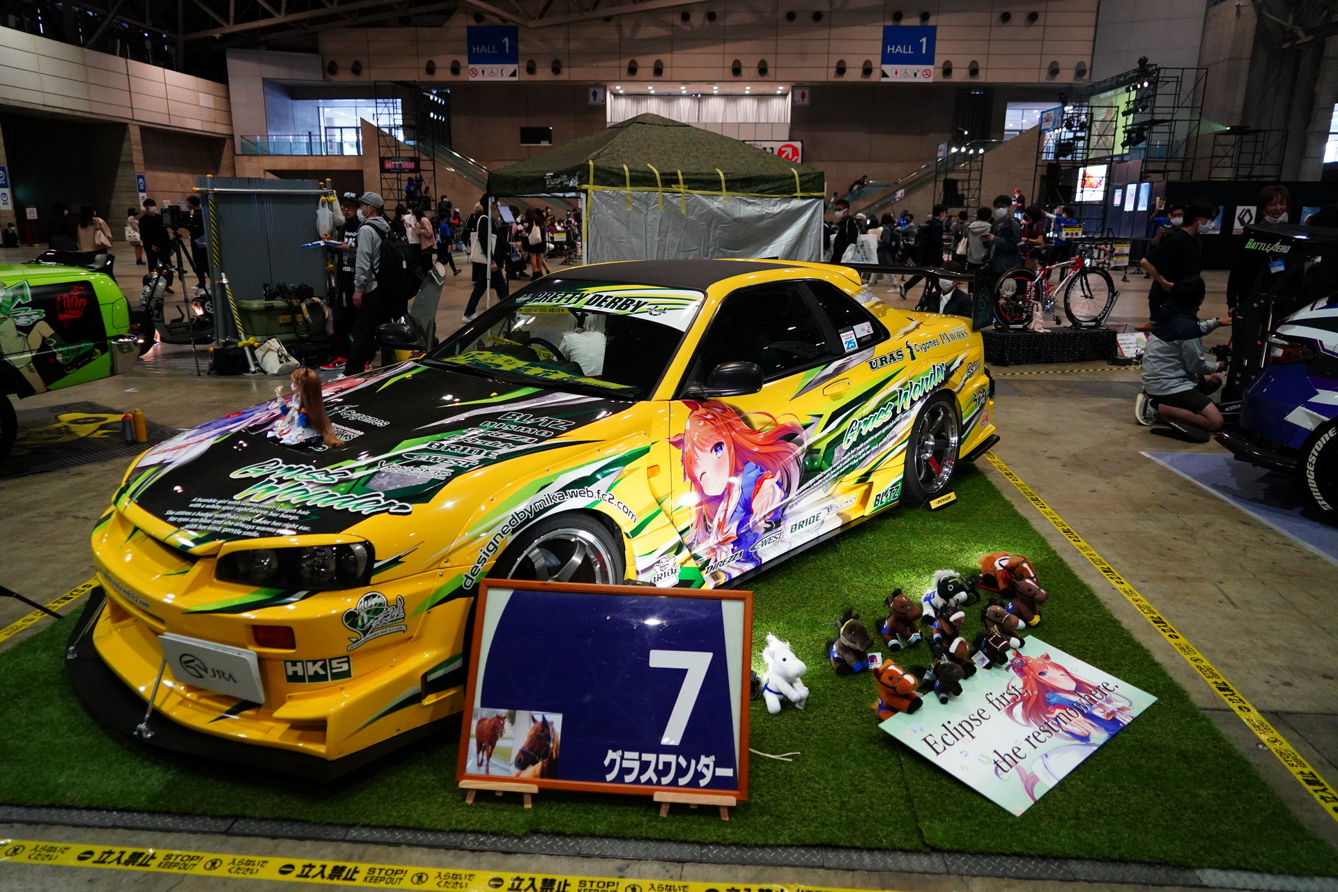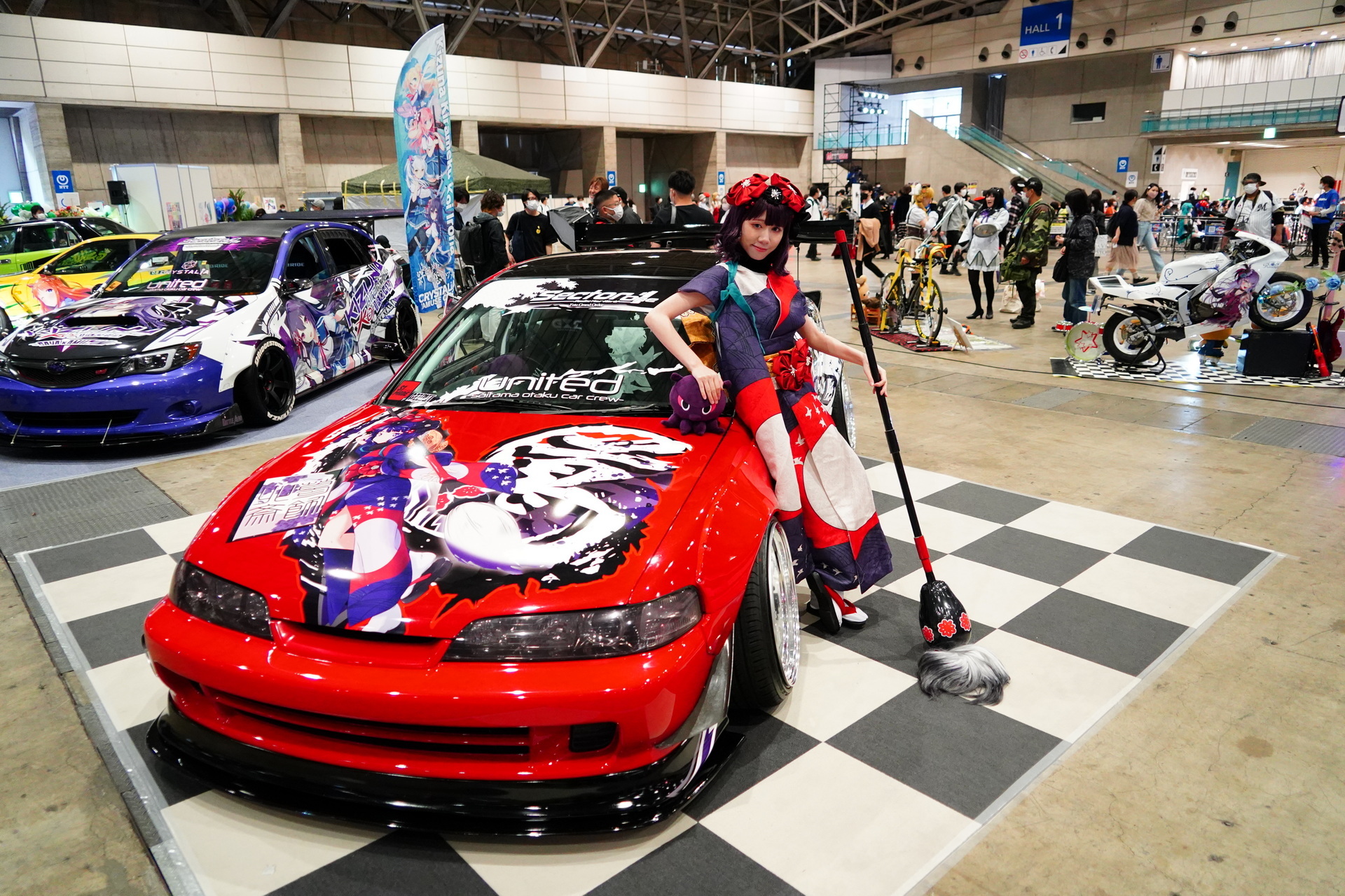 入場口からすぐの「超痛車天国」では力の入った痛車が集結。中にはコスプレイヤーと共にアピールする車両も。