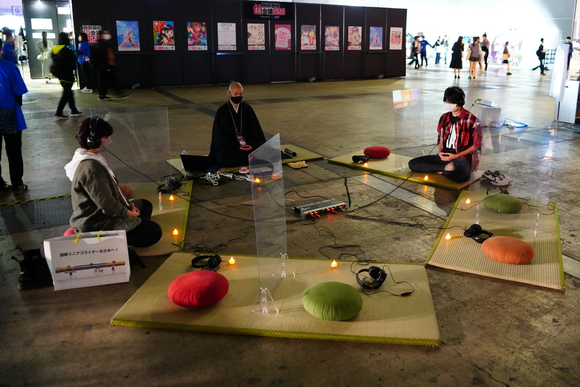 超テクノ法要と共に開催された寺社フェス「法源」では、座禅や仏像など様々な仏教コンテンツ体験が。さらに撮影禁止の秘仏(このシルエットは…)の公開も。