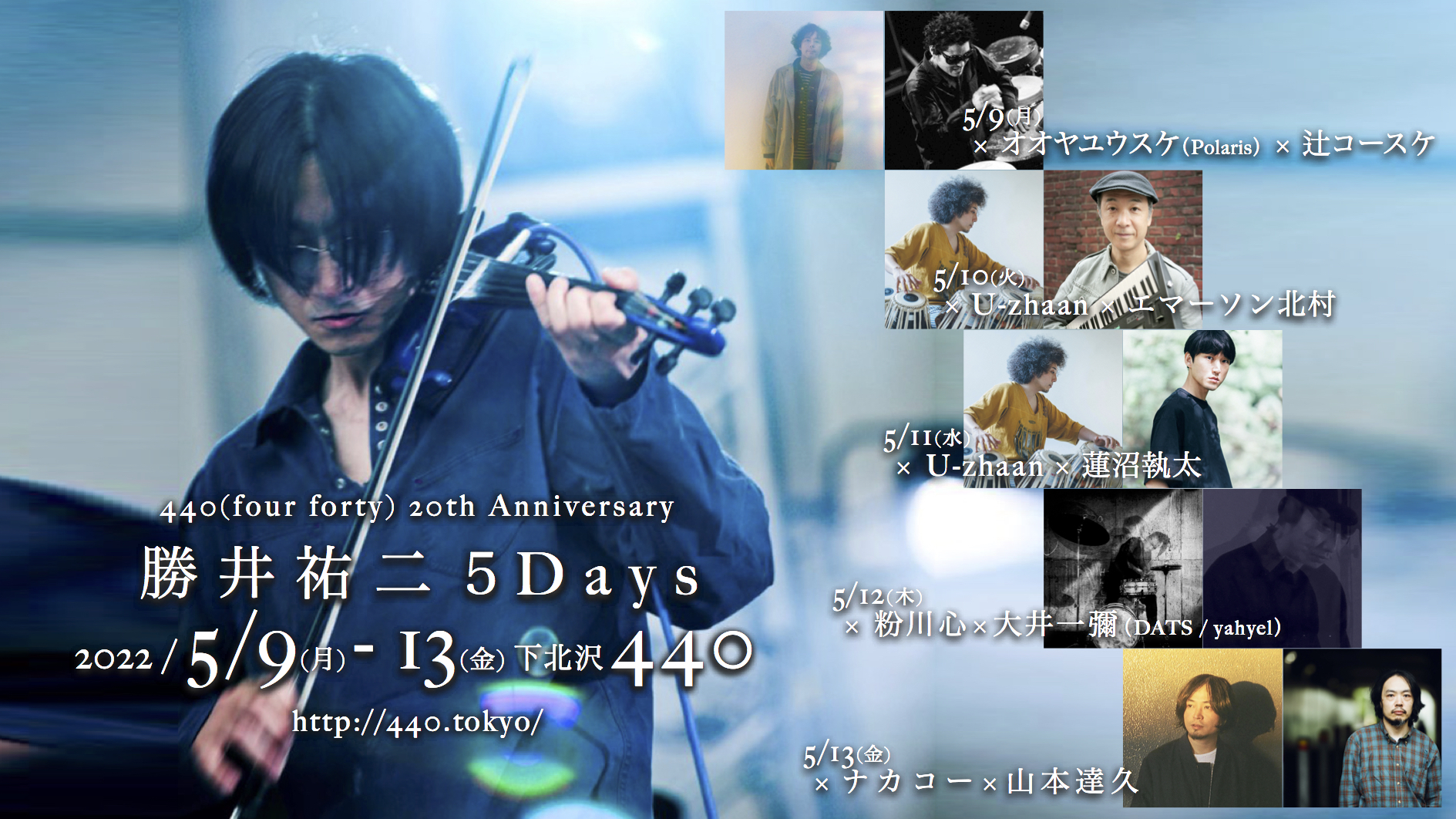 なお、ゴールデンウィーク中には『440(four forty)20th Anniversary Eve』と称し、オフィシャルYouTubeにて勝井祐二の過去ライブ映像をプレミア公開している。